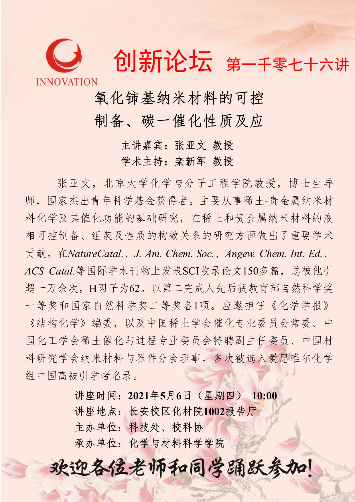 张亚文 教授 BB平台创新论坛第一千零七十六讲:氧化铈基纳米材料的可控制备、碳一催化性质及应用 讲座时间 2021年5月6日(星期四) 10:00 讲座地点 长安校区化材院1002报告厅 讲座人介绍 张亚文 教授 讲座内容