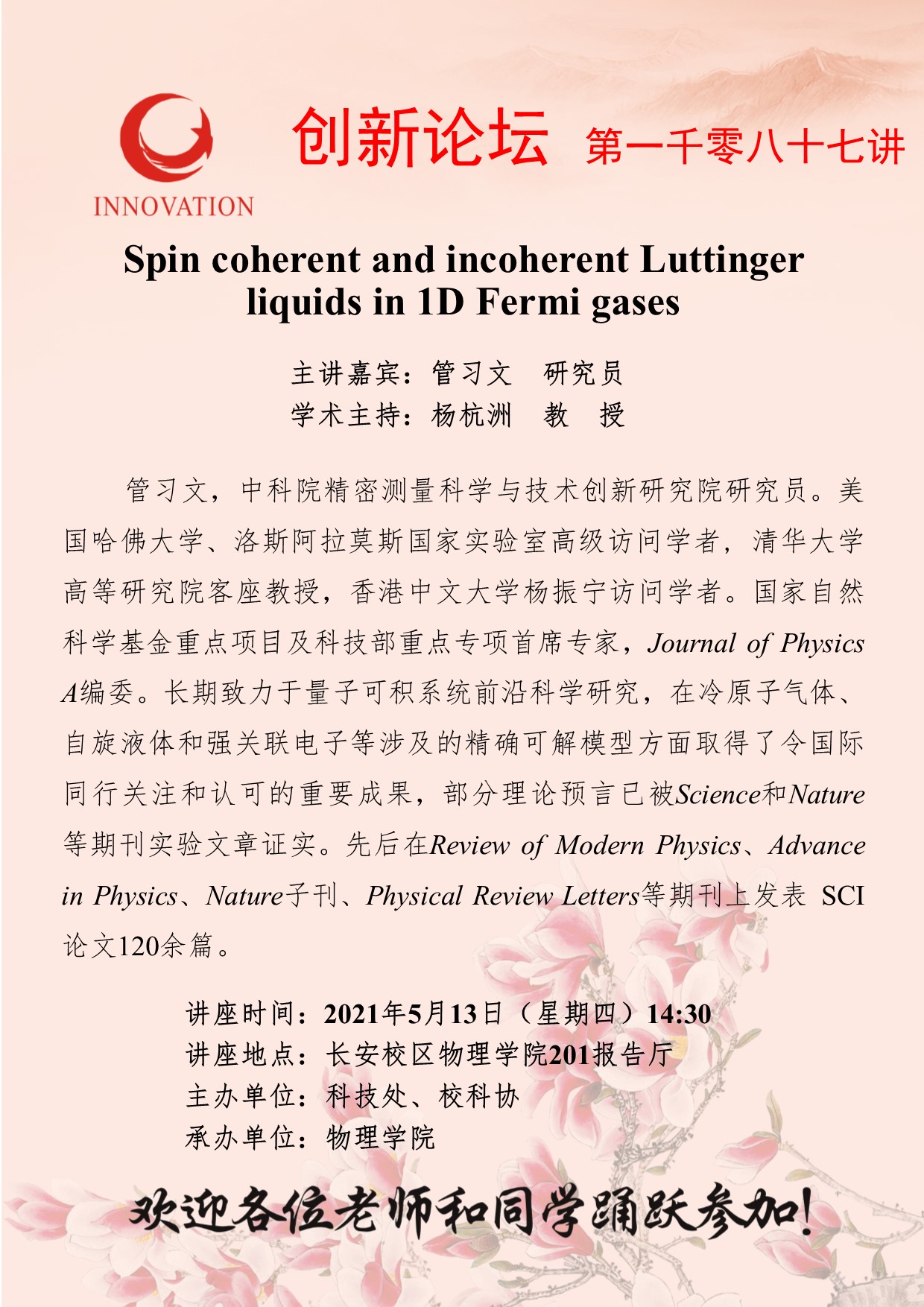 管习文 研究员 BB平台创新论坛第一千零八十七讲:Spin coherent and incoherent Luttinger liquids in 1D Fermi gases 讲座时间 2021年5月13日(星期四)14:30 讲座地点 长安校区物理学院201报告厅 讲座人介绍 管习文 研究员 讲座内容