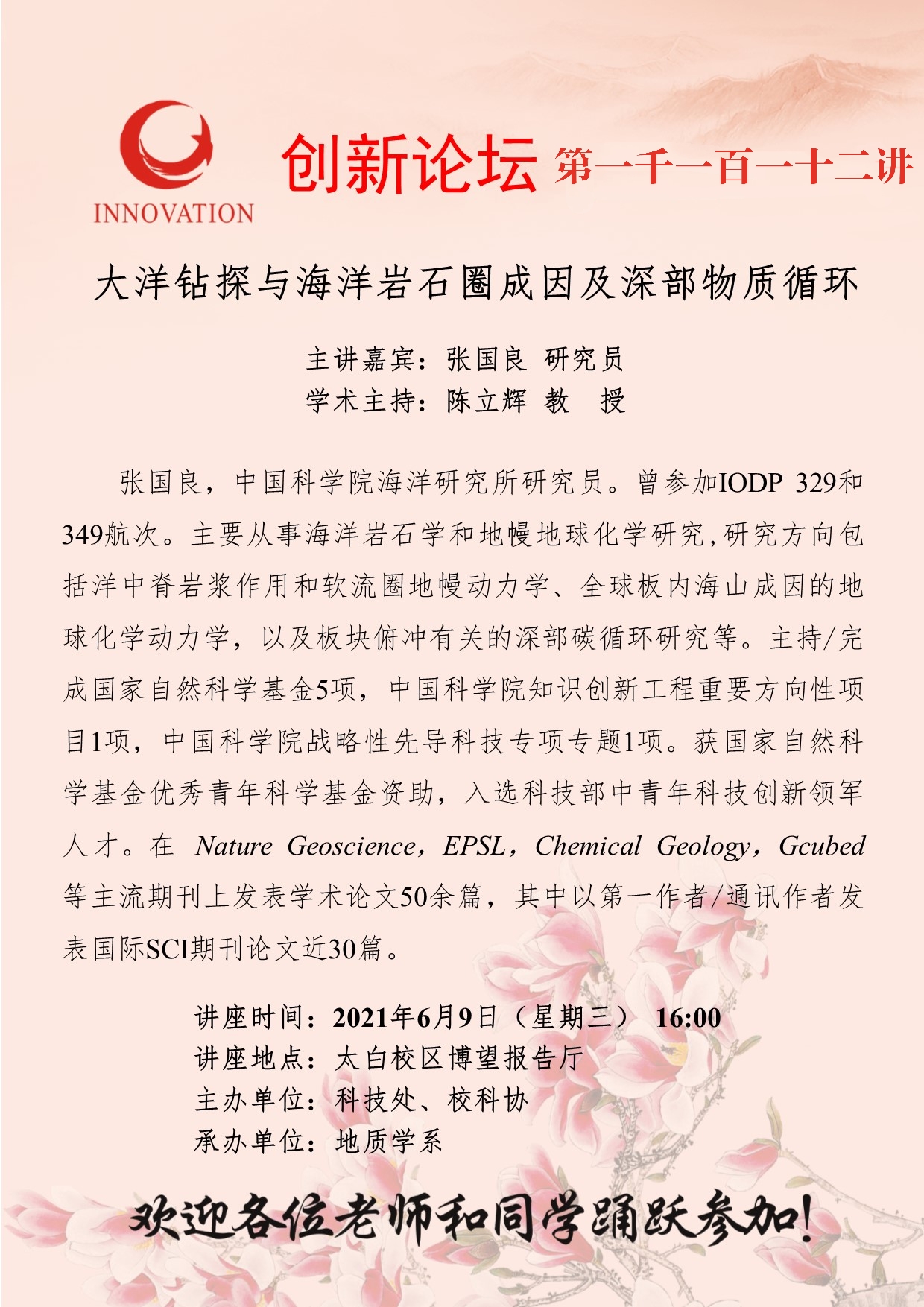 张国良 研究员 BB平台创新论坛第一千一百一十二讲:大洋钻探与海洋岩石圈成因及深部物质循环 讲座时间 2021年6月9日(星期三) 16:00 讲座地点 太白校区博望报告厅 讲座人介绍 张国良 研究员 讲座内容
