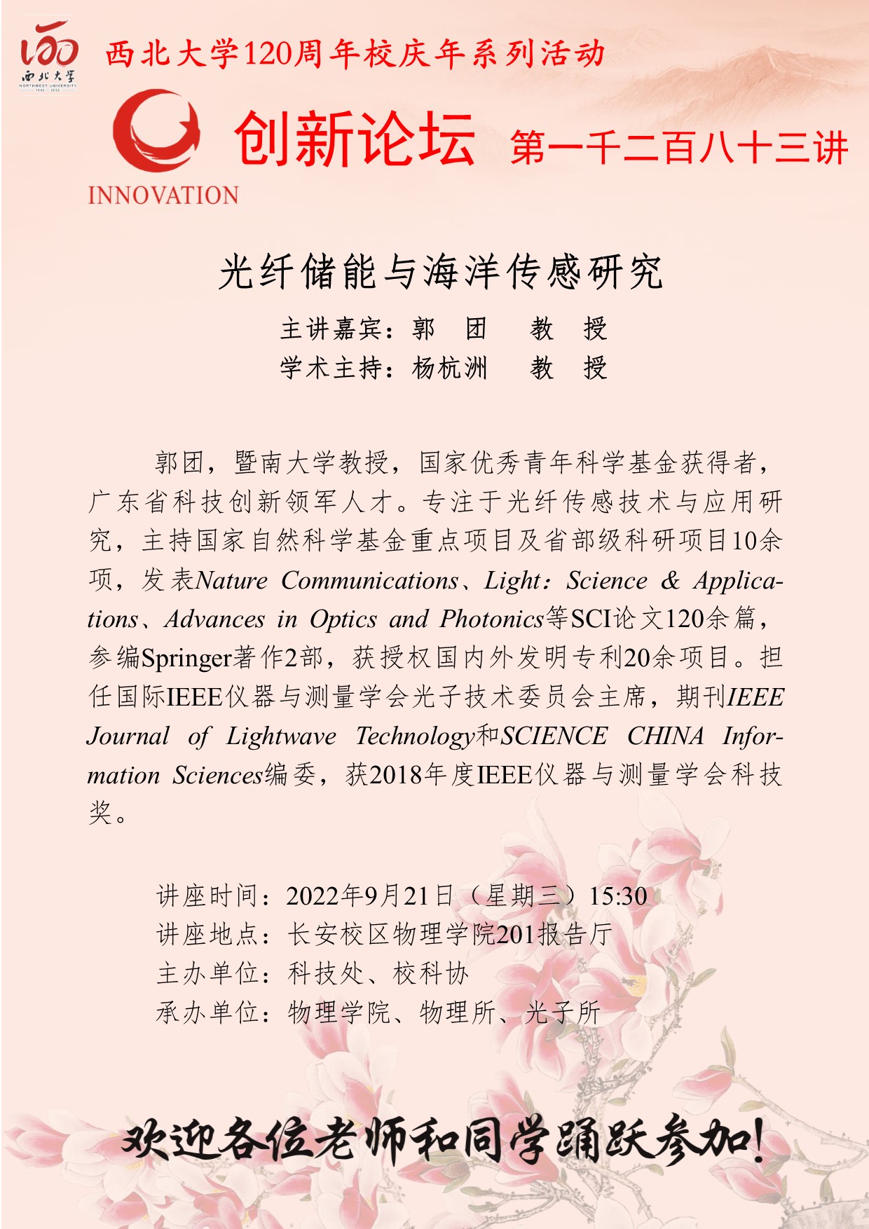 郭团 教授 BB平台创新论坛第一千二百八十三讲暨120周年校庆年系列活动::光纤储能与海洋传感研究 讲座时间 2022年9月21日(星期三) 15:30 讲座地点 物理学院201报告厅 讲座人介绍 郭团 教授 讲座内容