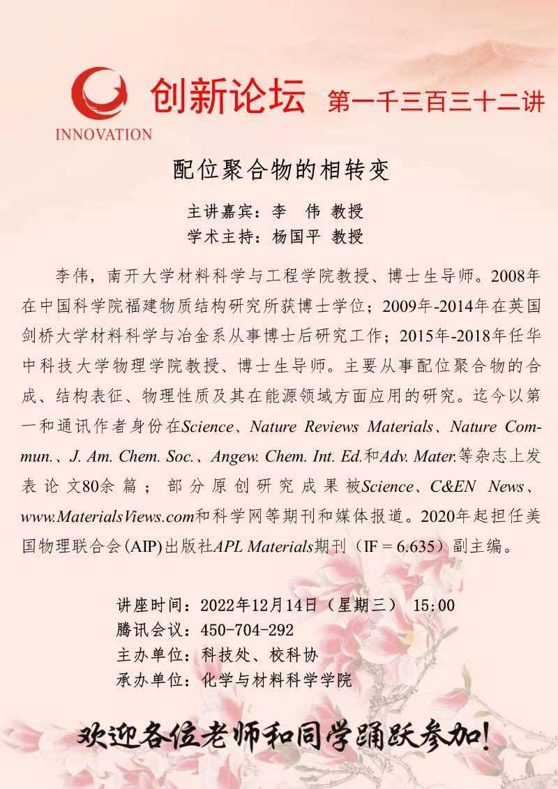 BB平台创新论坛第一千三百三十二讲:配位聚合物的相转变