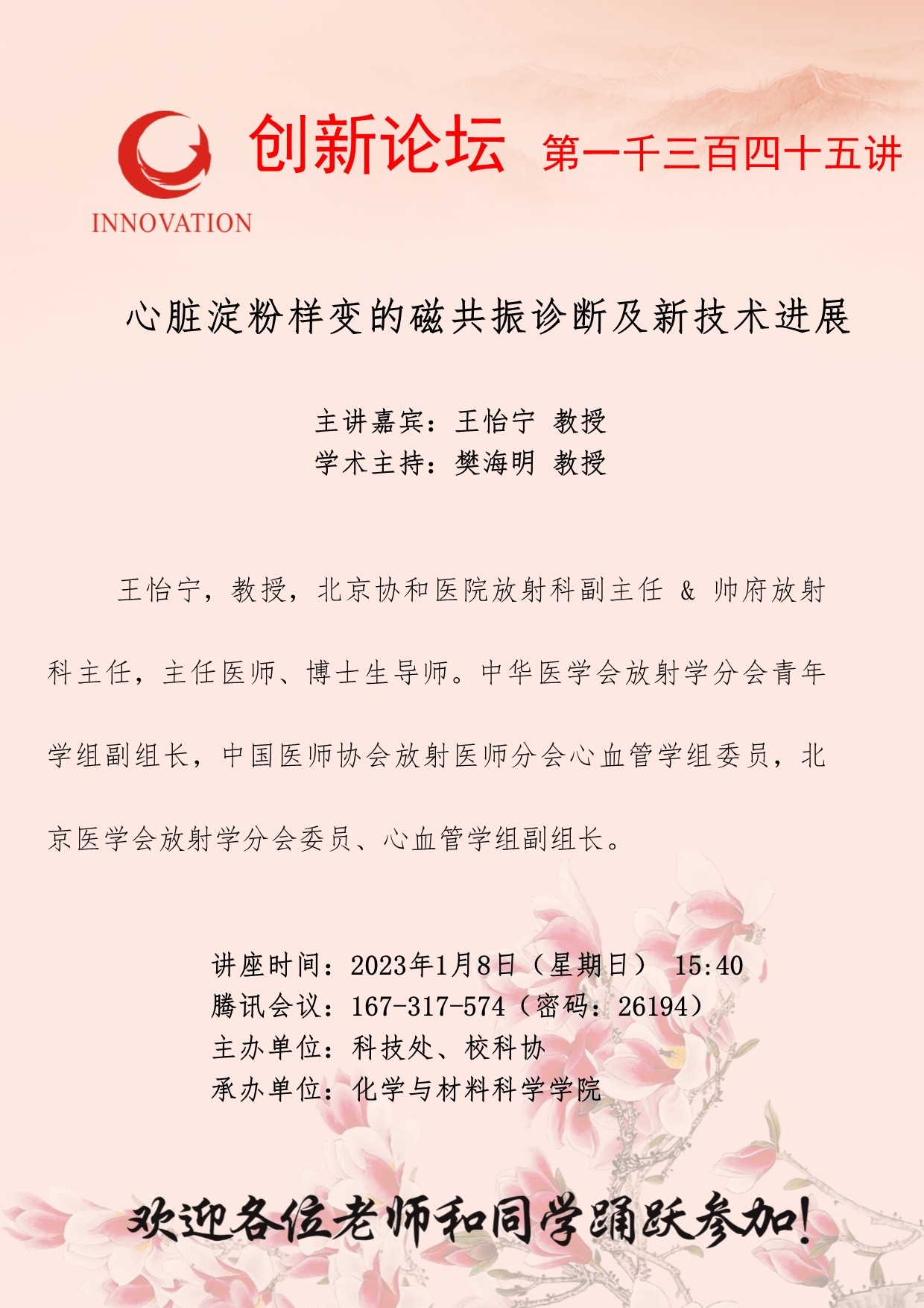 王怡宁 教授 BB平台创新论坛第一千三百四十五讲:心脏淀粉样变的磁共振诊断及新技术进展 讲座时间 2023年1月8日(星期日) 15:40 讲座地点 腾讯会议:167-317-574 讲座人介绍 王怡宁 教授 讲座内容