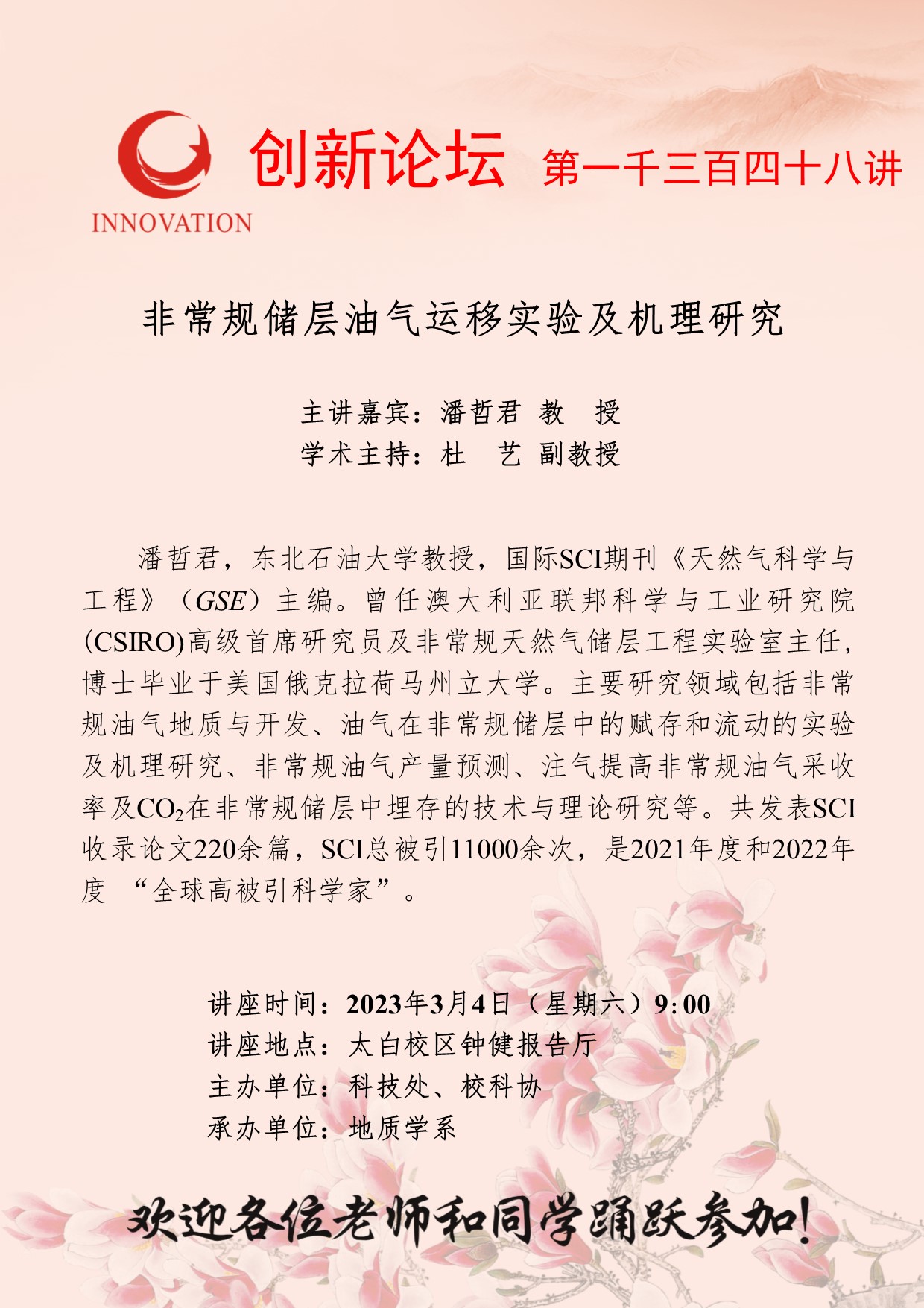 BB平台创新论坛第一千三百四十八讲:非常规储层油气运移实验及机理研究