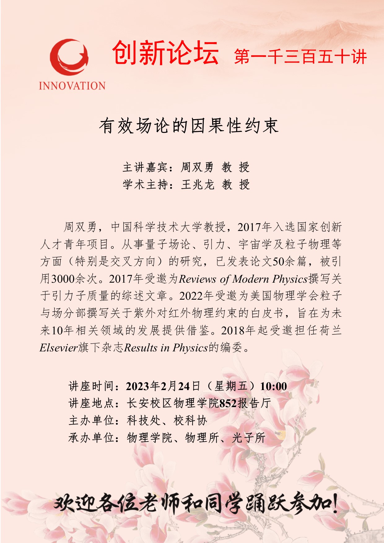 BB平台创新论坛第一千三百五十讲: 有效场论的因果性约束