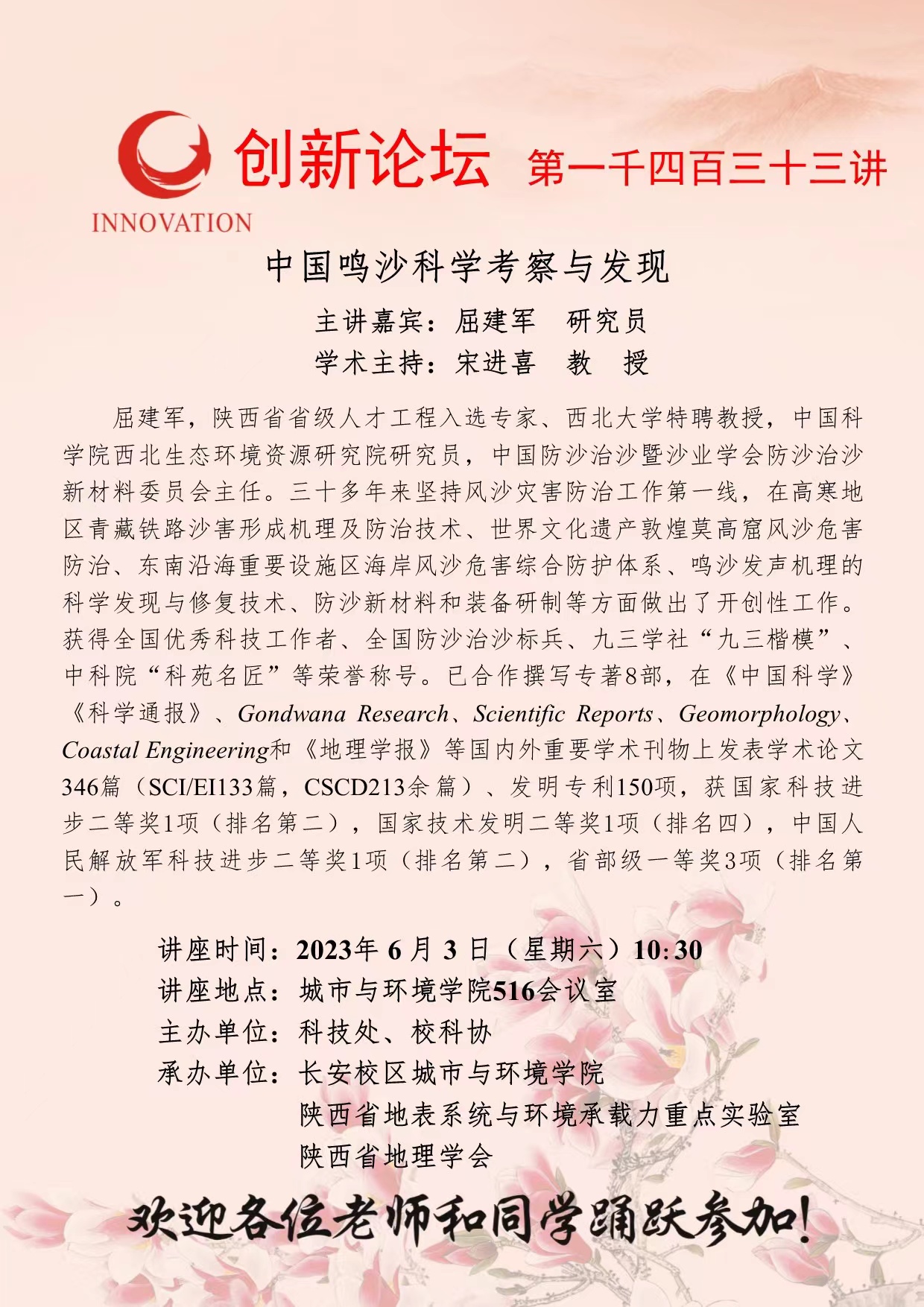 BB平台创新论坛第一千四百三十三讲:中国鸣沙科学考察与发现