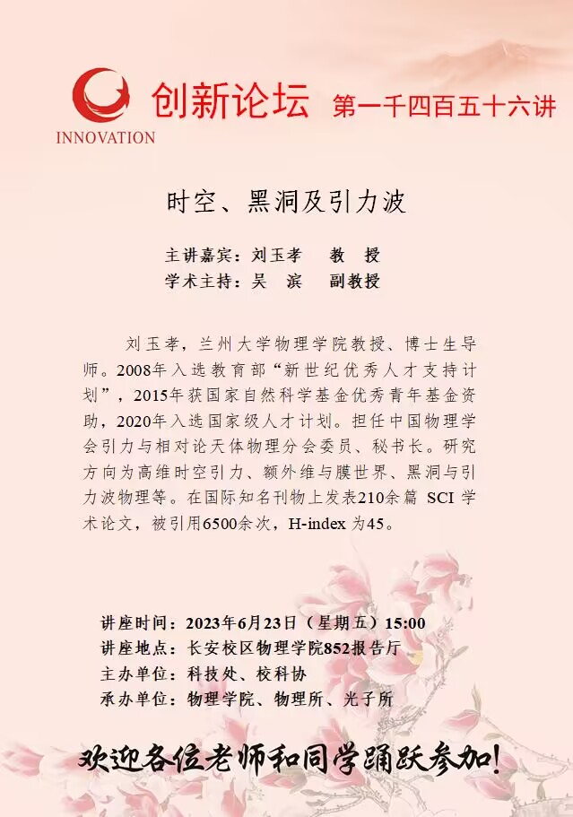 BB平台创新论坛第一千四百五十六讲: 时空、黑洞及引力波