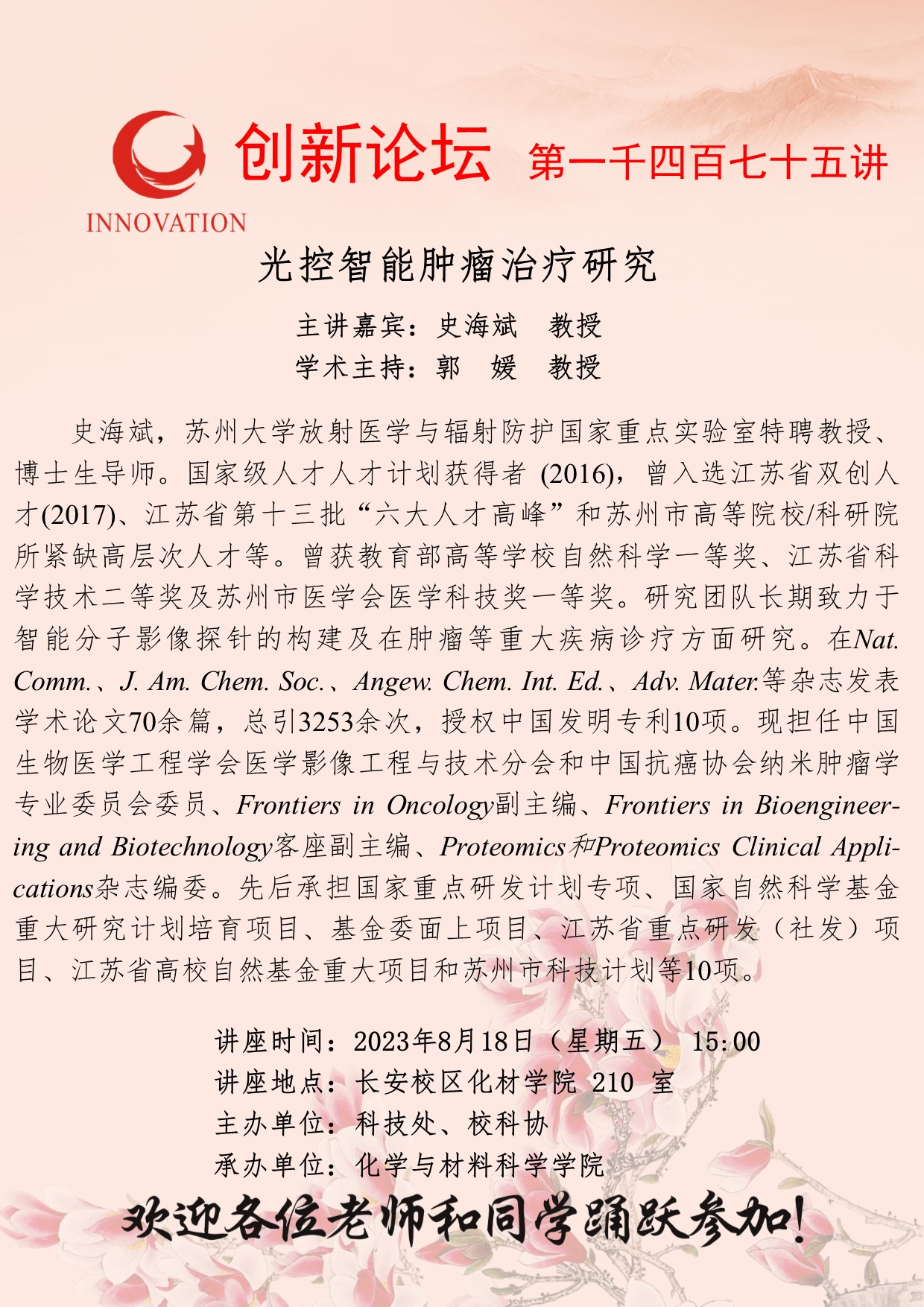 BB平台创新论坛第一千四百七十五讲:光控智能肿瘤治疗研究