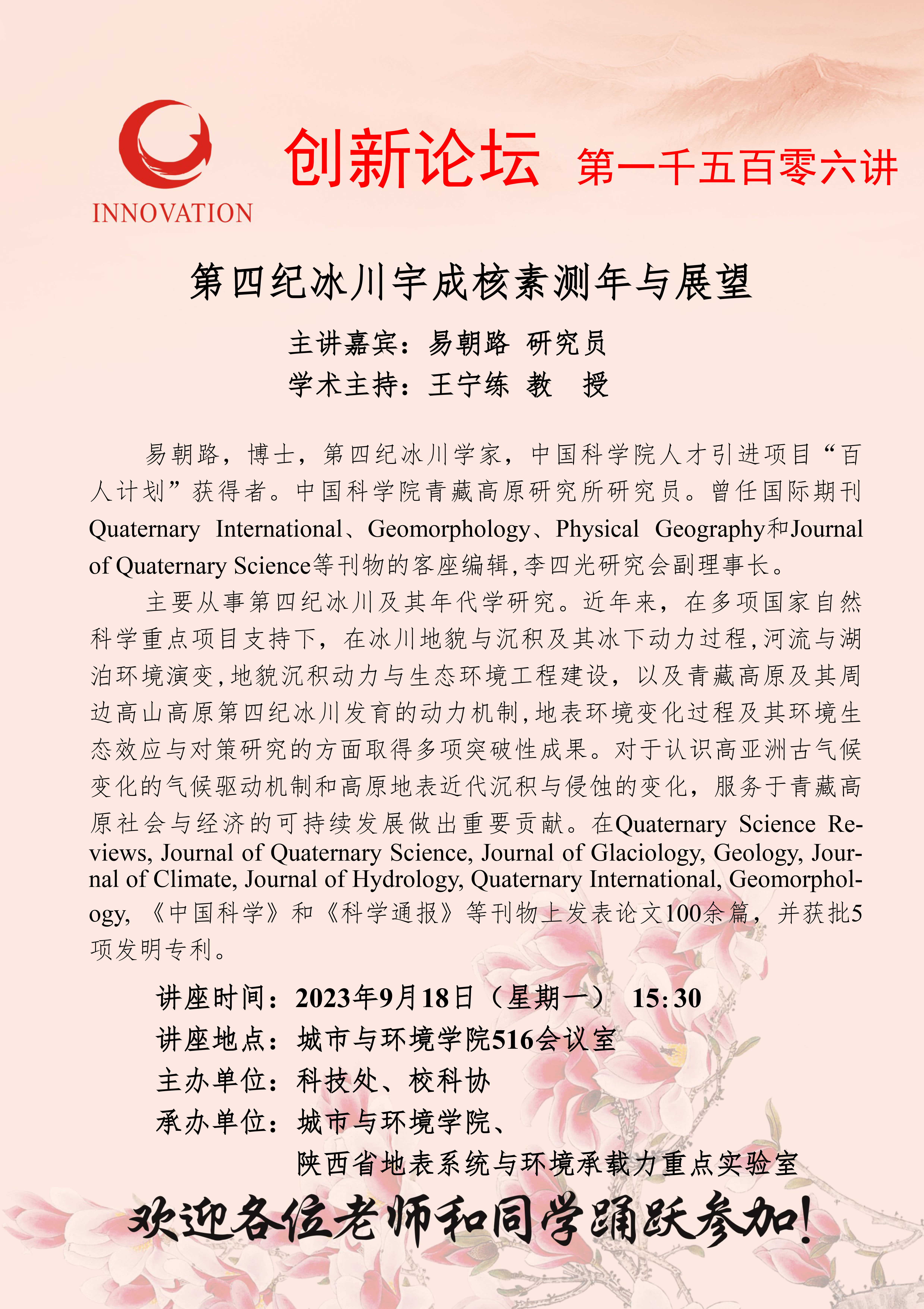 易朝路 研究员 BB平台创新论坛第一千五百零六讲:第四纪冰川宇成核素测年与展望 讲座时间 2023年9月18日(星期一)15:30 讲座地点 城市与环境学院516会议室 讲座人介绍 易朝路 研究员 讲座内容