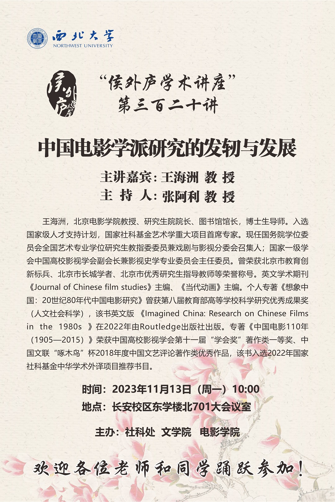 侯外庐学术讲座第三百二十讲:中国电影学派研究的发轫与发展