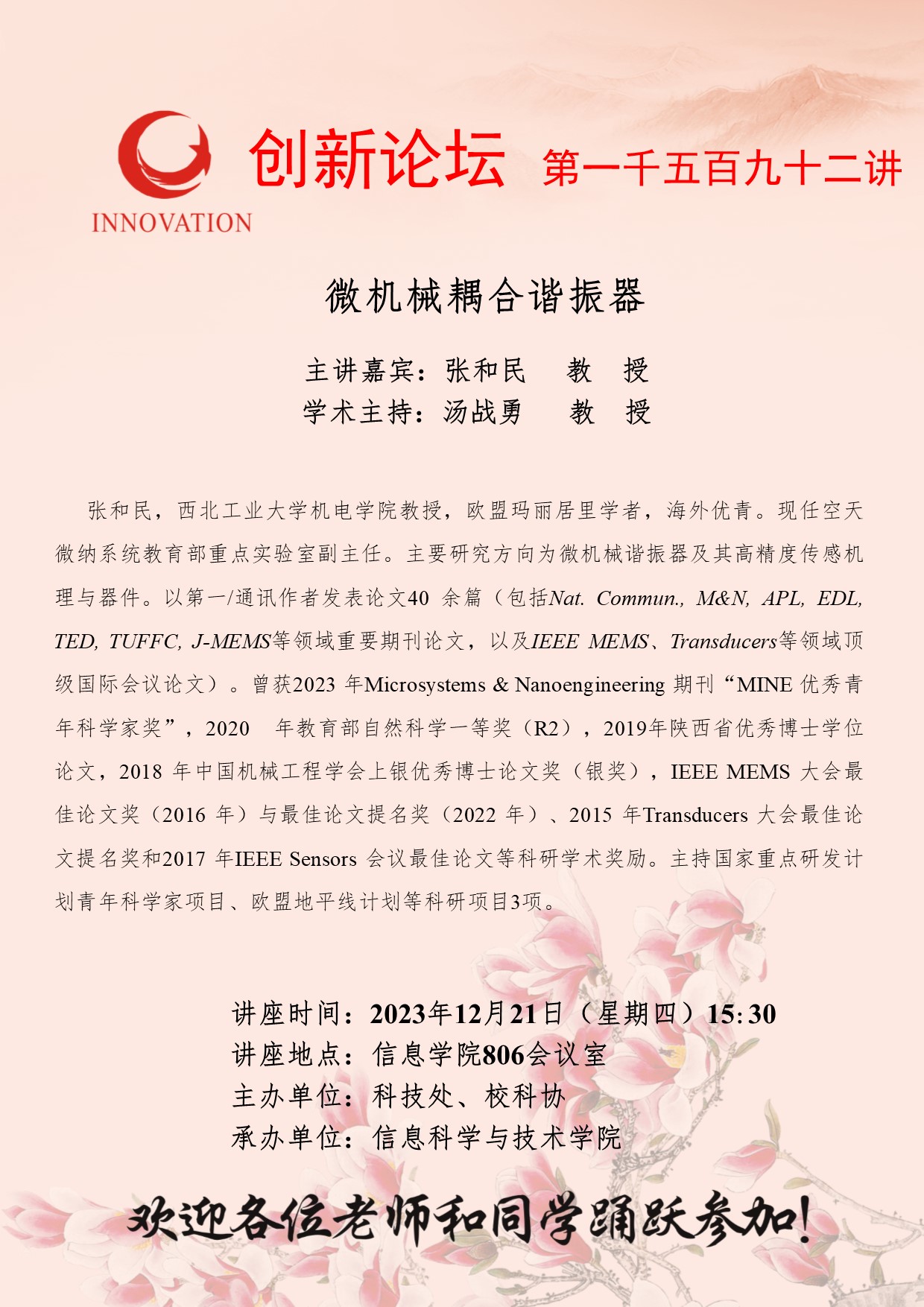 BB平台创新论坛第一千五百九十二讲:微机械耦合谐振器