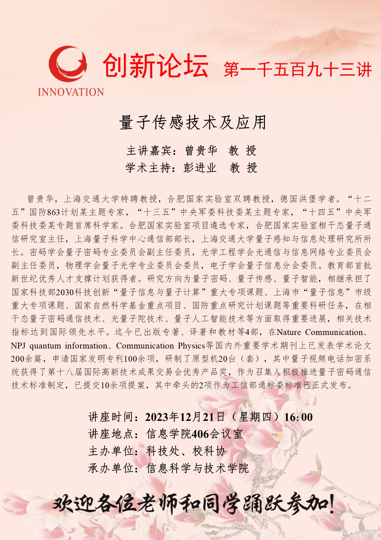 BB平台创新论坛第一千五百九十三讲:量子传感技术及应用