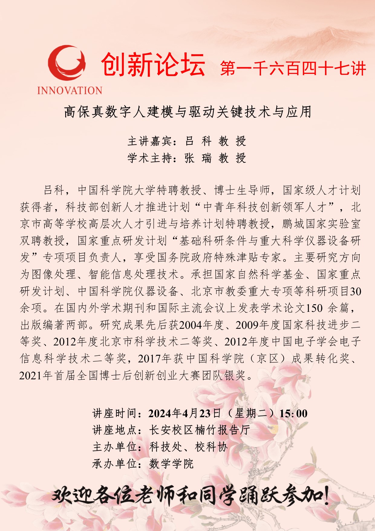 BB平台创新论坛第一千六百四十七讲:高保真数字人建模与驱动关键技术与应用