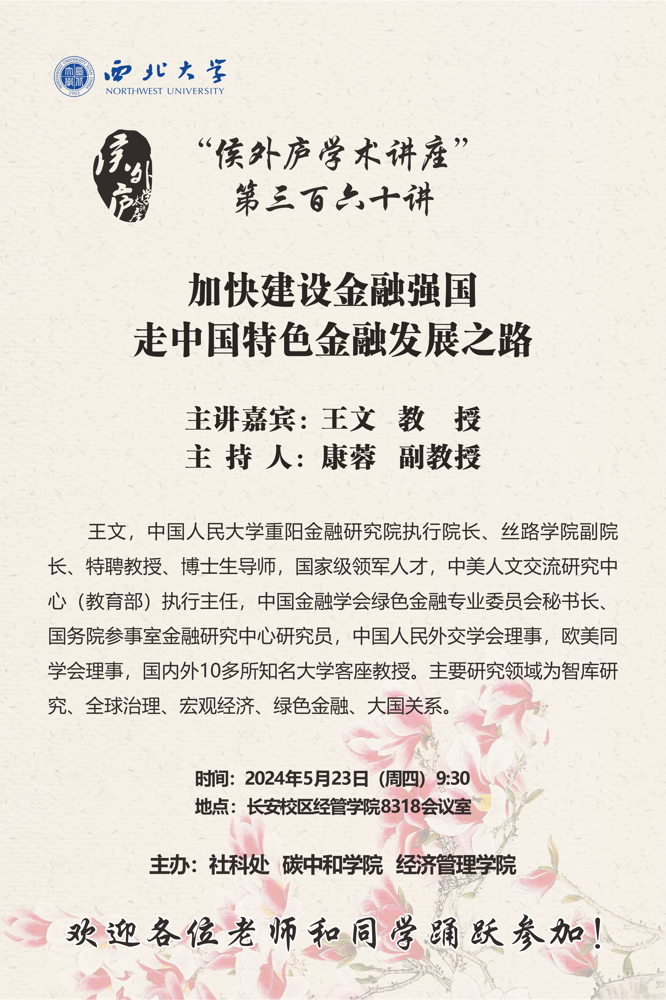 “侯外庐学术讲座”第三百六十讲:加快建设金融强国,走中国特色金融发展之路