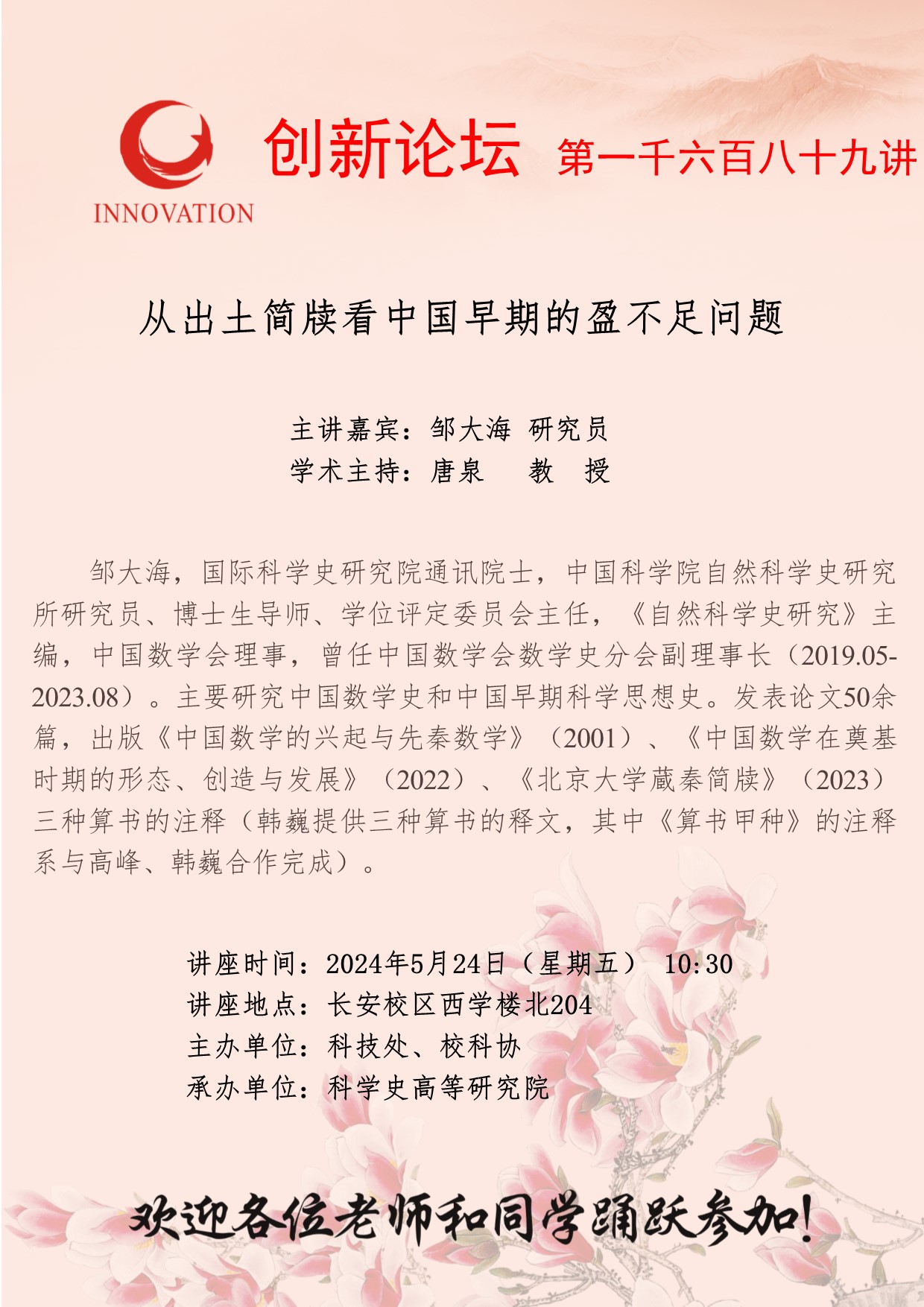 邹大海 研究员 BB平台创新论坛第一千六百八十九讲:从出土简牍看中国早期的盈不足问题 讲座时间 2024年5月24日(星期五) 10:30 讲座地点 长安校区西学楼北204 讲座人介绍 邹大海 研究员 讲座内容