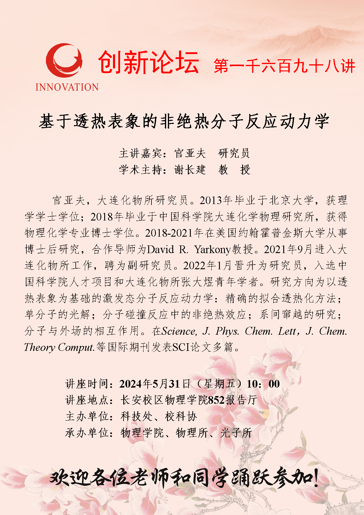 官亚夫 研究员 BB平台创新论坛第一千六百九十八讲:基于透热表象的非绝热分子反应动力学 讲座时间 2024年5月31日(星期五)10:00 讲座地点 长安校区物理学院852报告厅 讲座人介绍 官亚夫 研究员 讲座内容