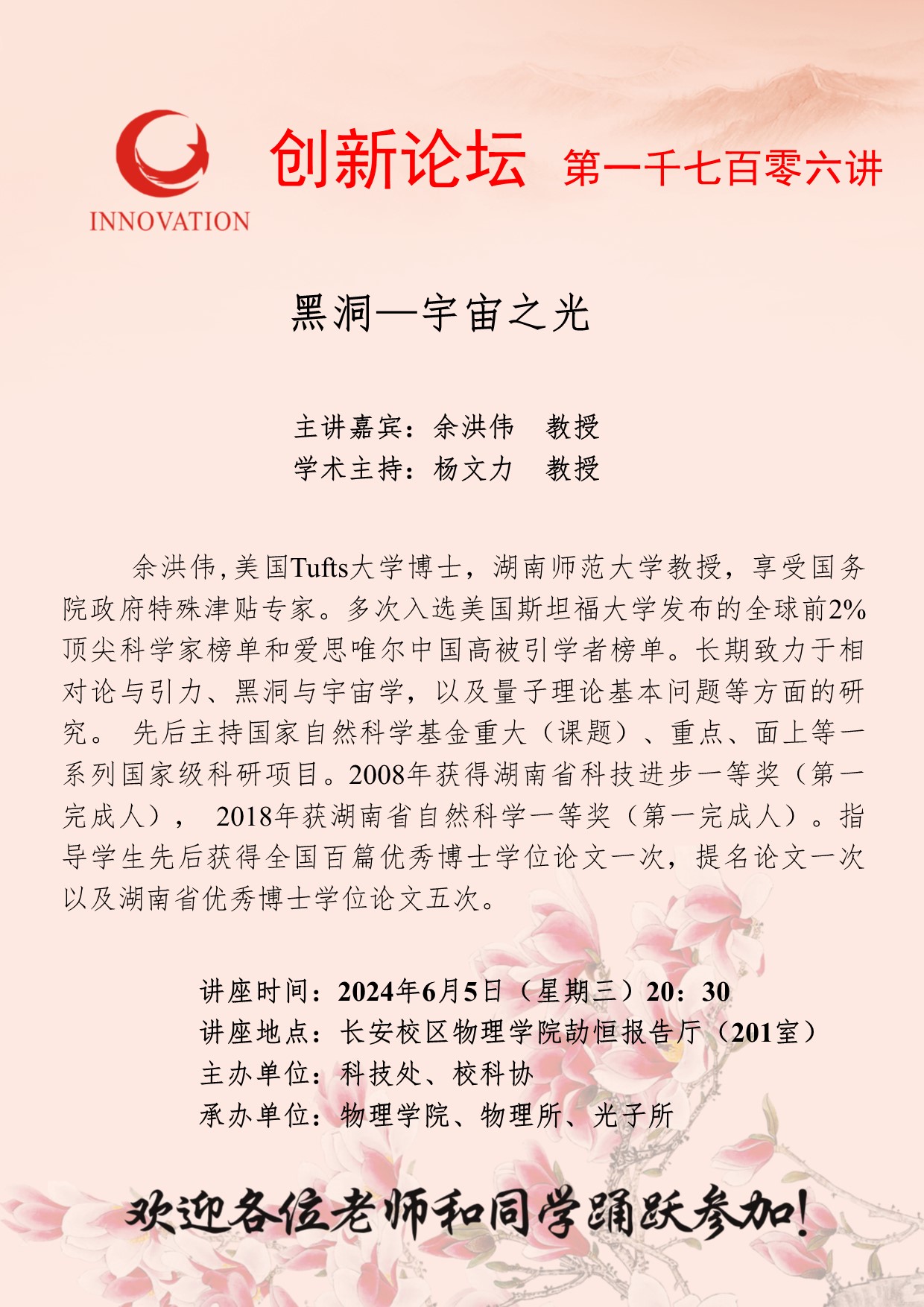 BB平台创新论坛第一千七百零六讲:黑洞—宇宙之光