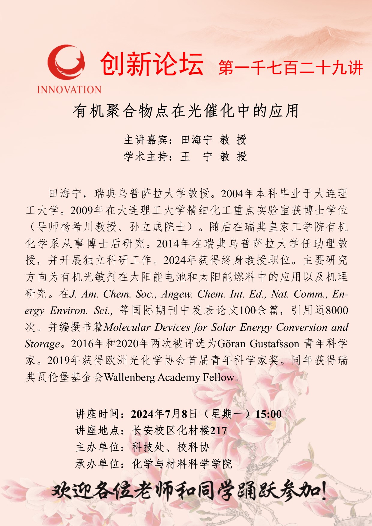 BB平台创新论坛第一千七百二十九讲:有机聚合物点在光催化中的应用