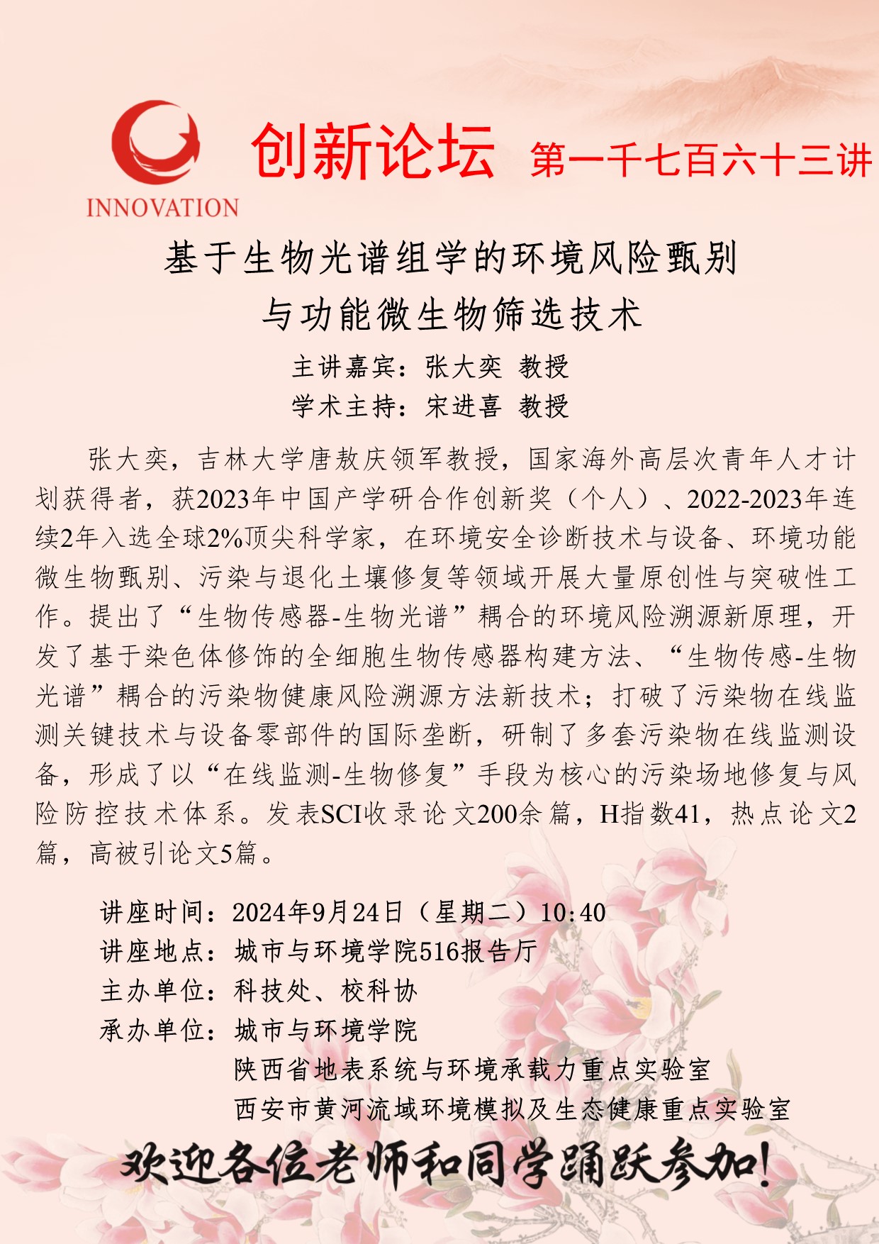 张大奕 教授 BB平台创新论坛第一千七百六十三讲:基于生物光谱组学的环境风险甄别与功能微生物筛选技术 讲座时间 2024年9月24日(星期二)10:40 讲座地点 城市与环境学院516报告厅 讲座人介绍 张大奕 教授 讲座内容