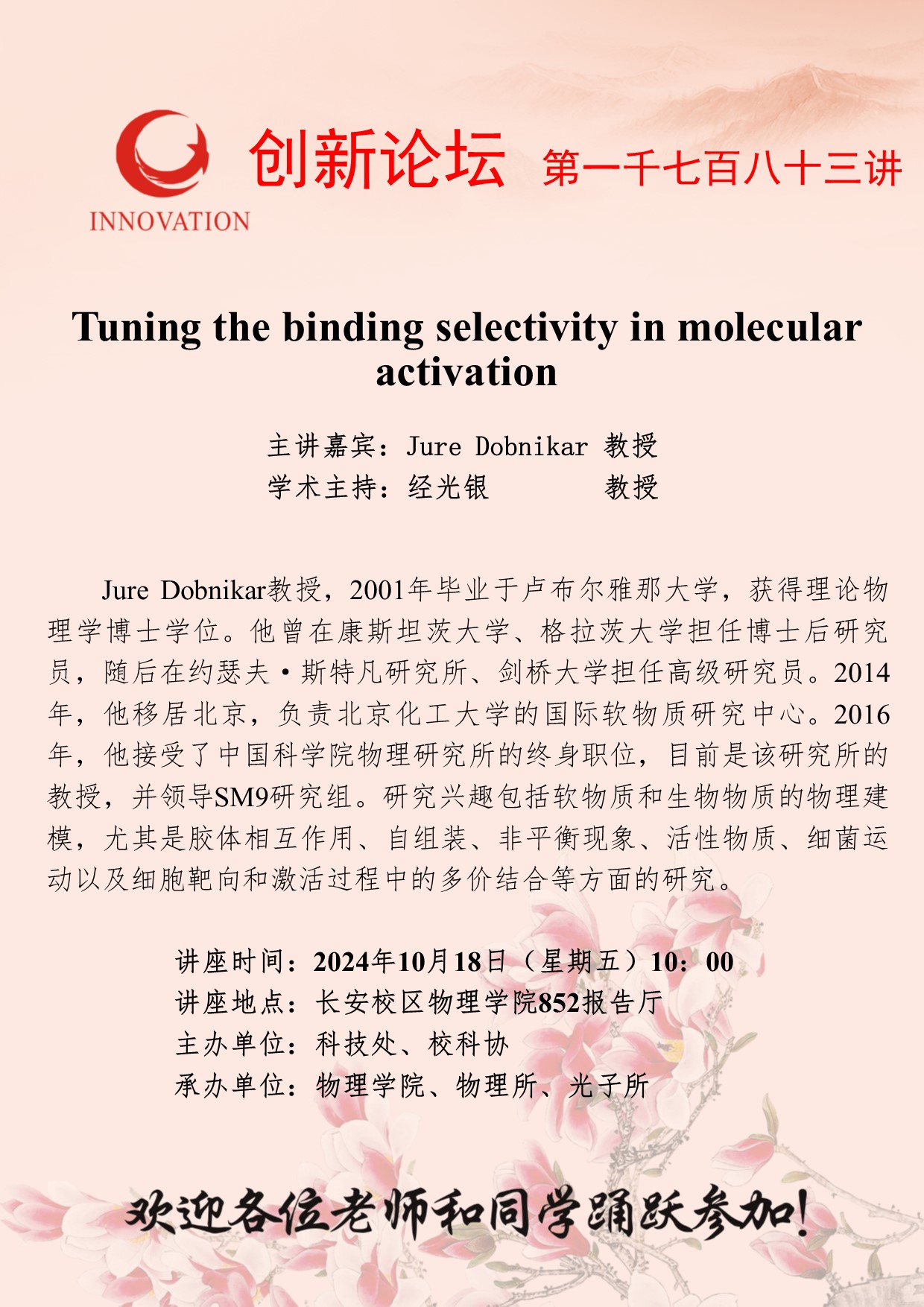 Jure Dobnikar 教授 BB平台创新论坛第一千七百八十三讲:Tuning the binding selectivity in molecular activation 讲座时间 2024年10月18日(星期五)10:00 讲座地点 长安校区物理学院852报告厅 讲座人介绍 Jure Dobnikar 教授 讲座内容