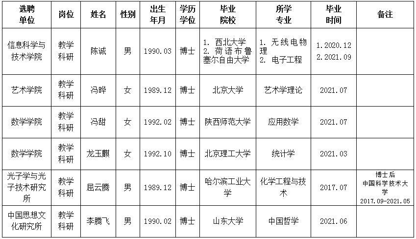 经用人单位推荐,人力资源部审查,学校教学督导及院系相关专家考核,BB(中国)_BB平台拟确定下列人员来校工作。本着公平、公正、公开的原则,现将本次拟选聘人员基本情况公示如下: