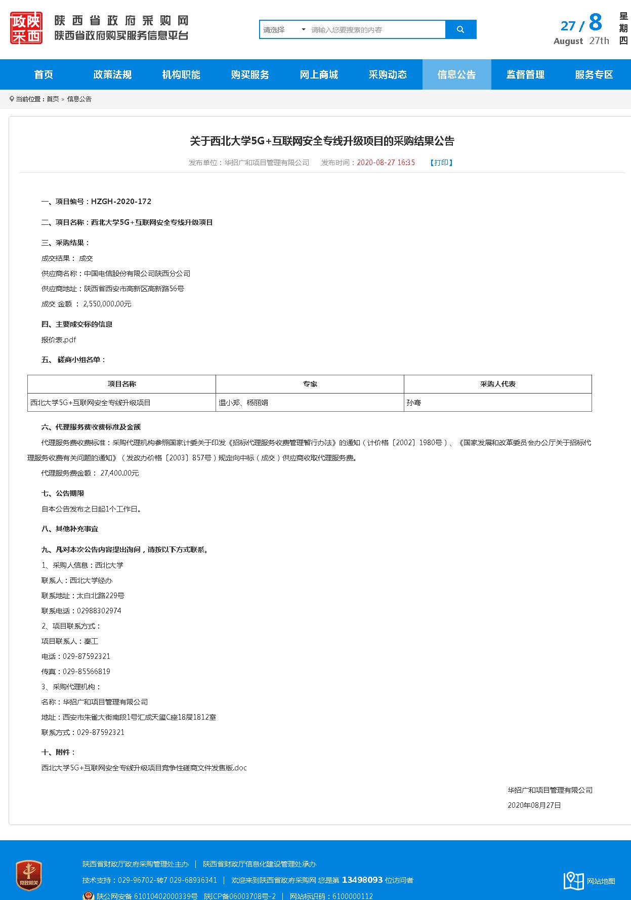 关于BB平台5G+互联网安全专线升级项目的采购结果公告