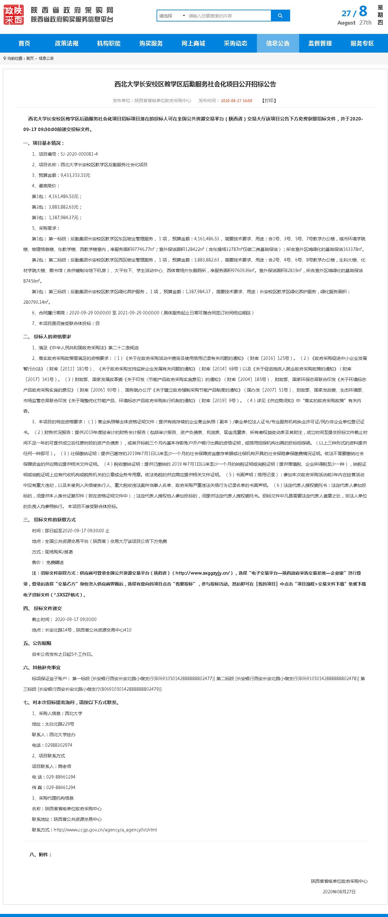 BB平台长安校区教学区后勤服务社会化项目公开招标公告