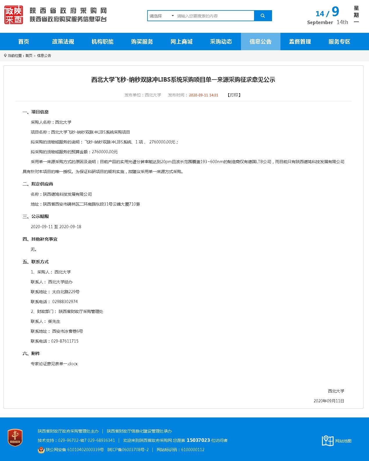 BB平台飞秒-纳秒双脉冲LIBS系统采购项目单一来源采购征求意见公示