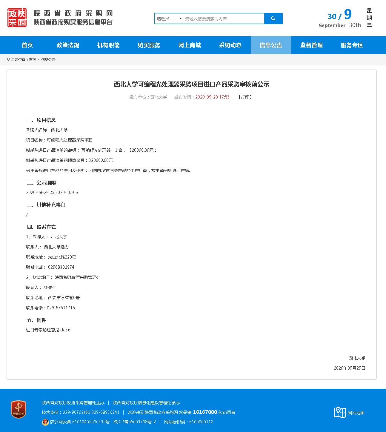 BB平台可编程光处理器采购项目进口产品采购审核前公示