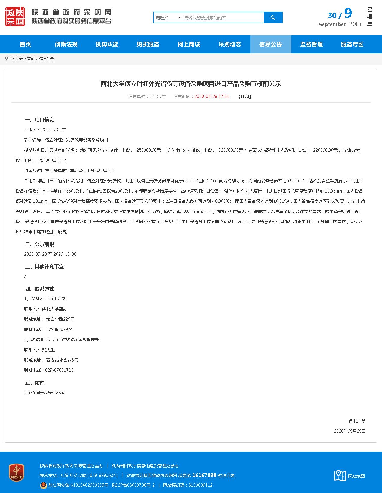 BB平台傅立叶红外光谱仪等设备采购项目进口产品采购审核前公示
