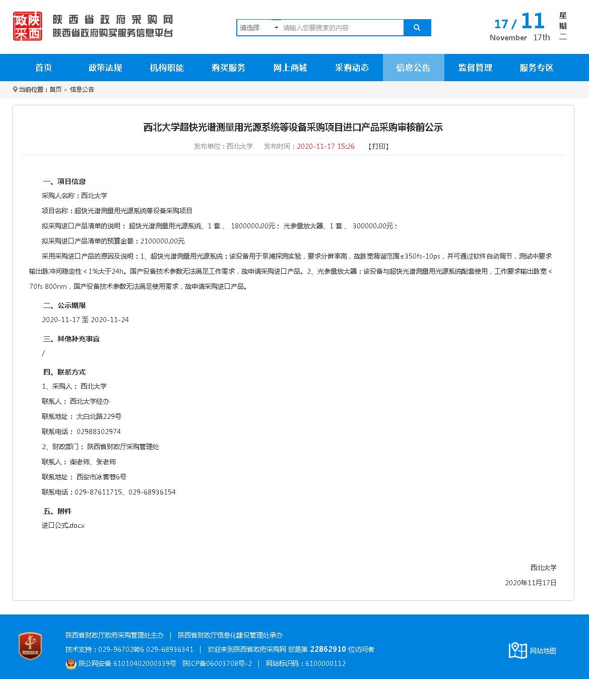 BB平台超快光谱测量用光源系统等设备采购项目进口产品采购审核前公示