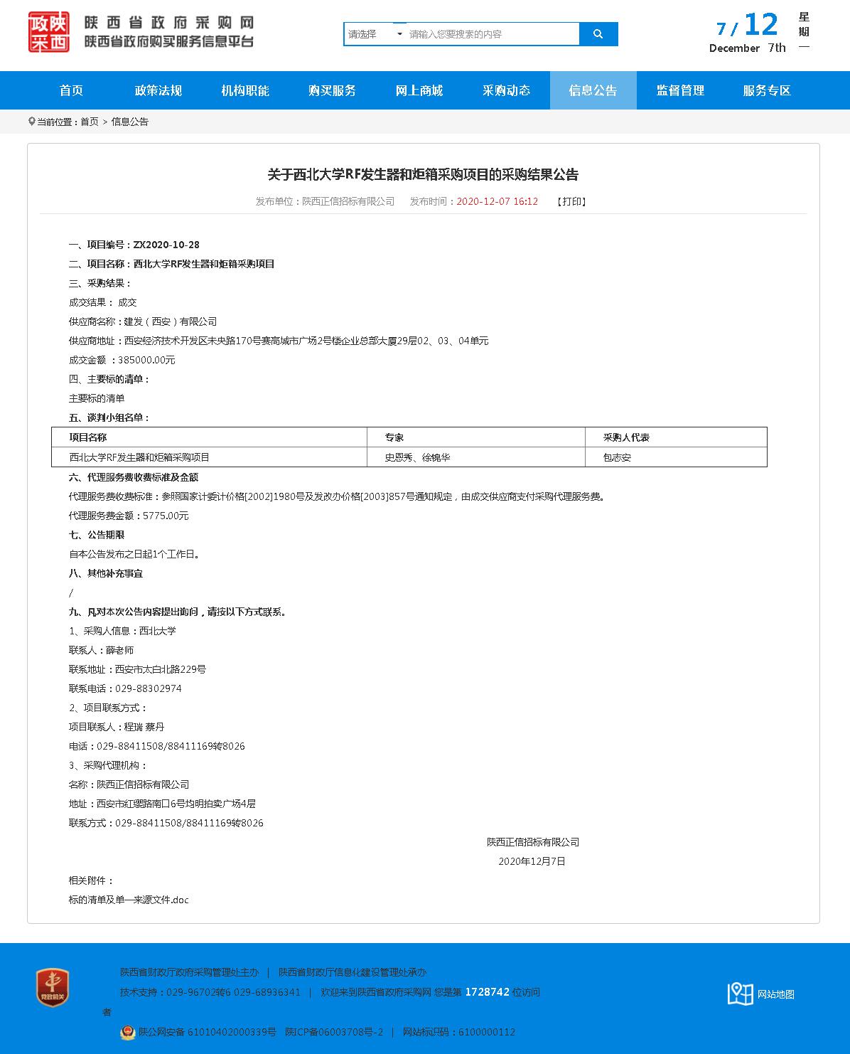 BB平台RF发生器和炬箱采购项目的采购结果公告