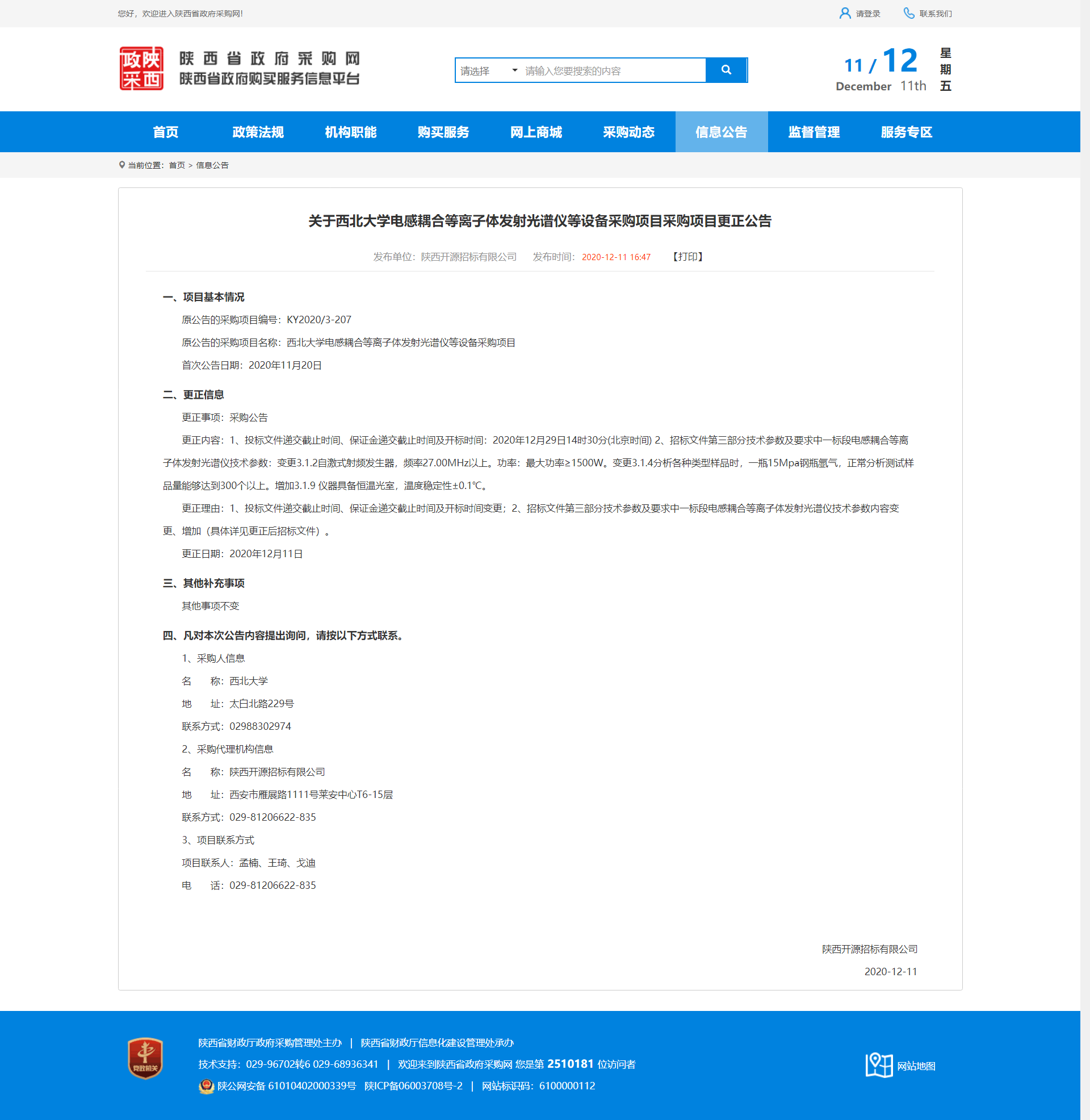 关于BB平台电感耦合等离子体发射光谱仪等设备采购项目采购项目更正公告 作者: 编辑:薛利娟 时间:2020-12-11 原公告地址:http://www.ccgp-shaanxi.gov.cn/notice/noticeDetail.do?noticeguid=8a85be3375d5d589017650e8e44672f0
