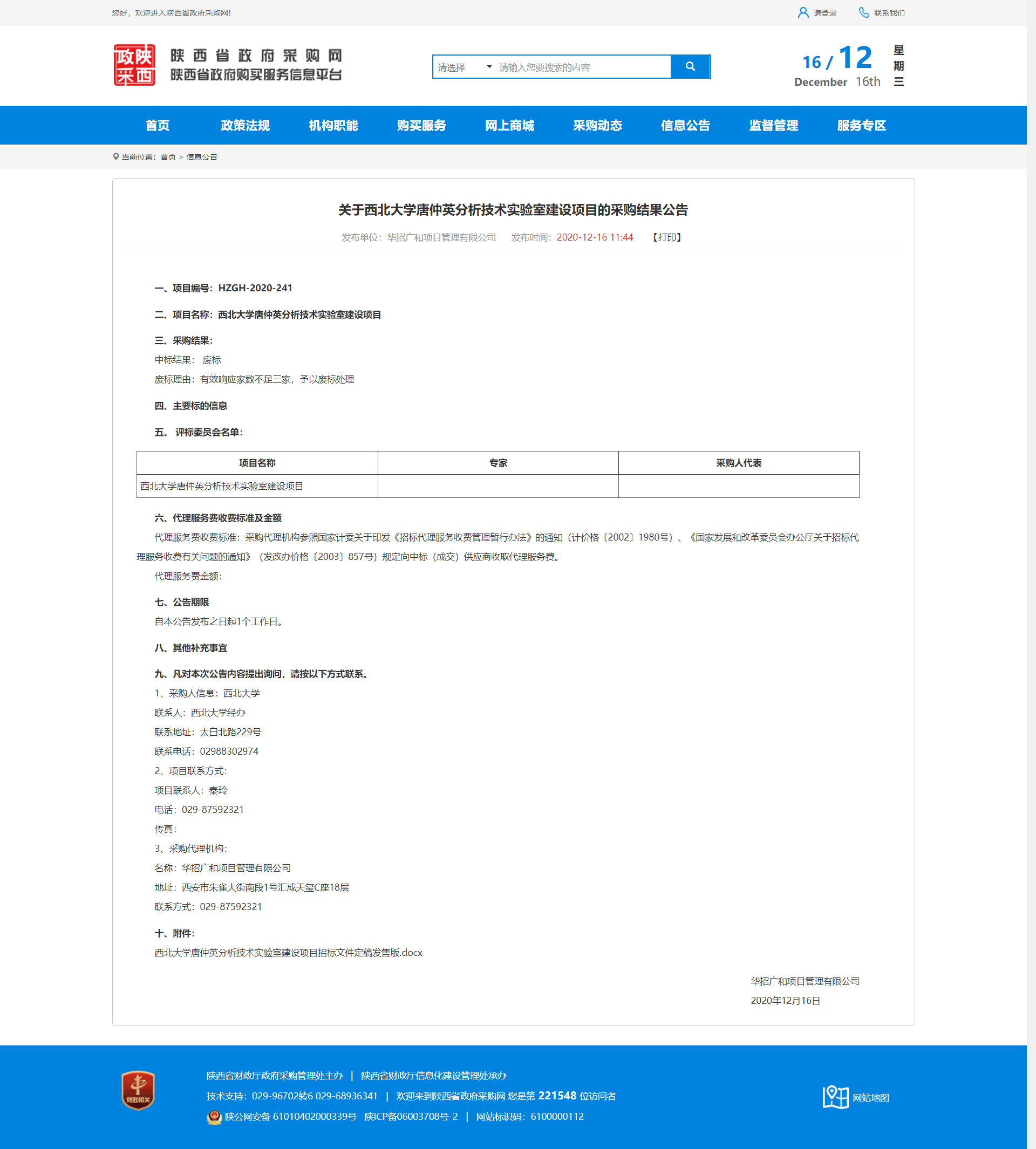 关于BB平台唐仲英分析技术实验室建设项目的采购结果公告 作者: 编辑:薛利娟 时间:2020-12-16 原公告地址:http://www.ccgp-shaanxi.gov.cn/notice/noticeDetail.do?noticeguid=8a85be31765f9a2a017669a24474710e