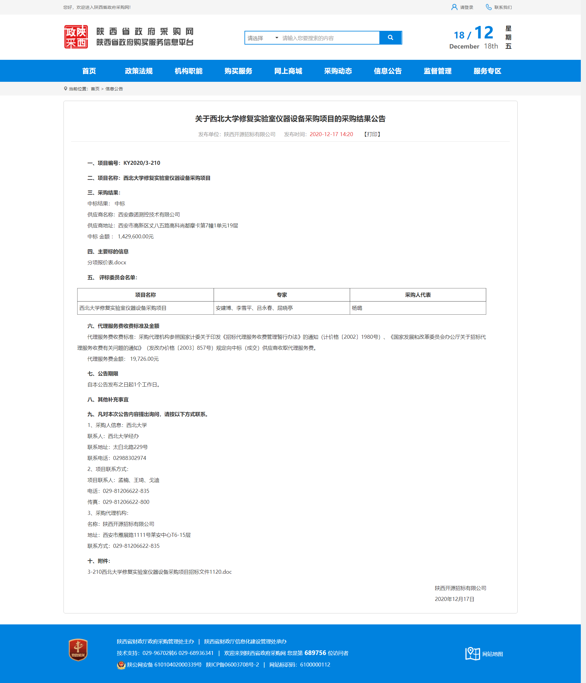 关于BB平台修复实验室仪器设备采购项目的采购结果公告 作者: 编辑:薛利娟 时间:2020-12-18 原公告地址:http://www.ccgp-shaanxi.gov.cn/notice/noticeDetail.do?noticeguid=8a85be34765f9eac01766f3cbcd749f6