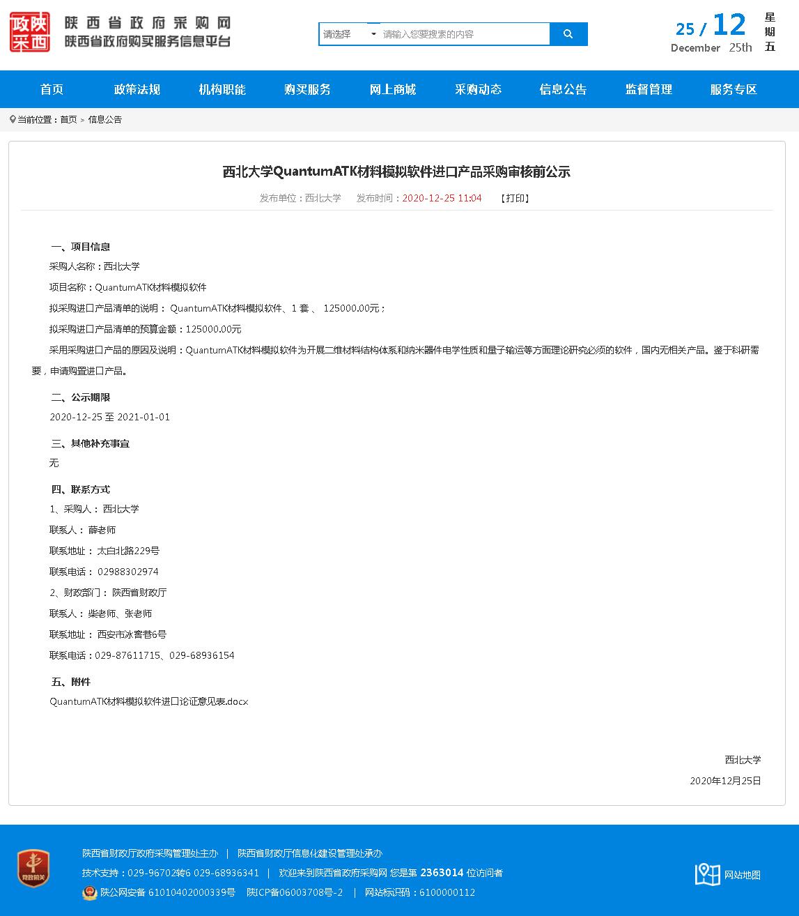 BB平台QuantumATK材料模拟软件进口产品采购审核前公示