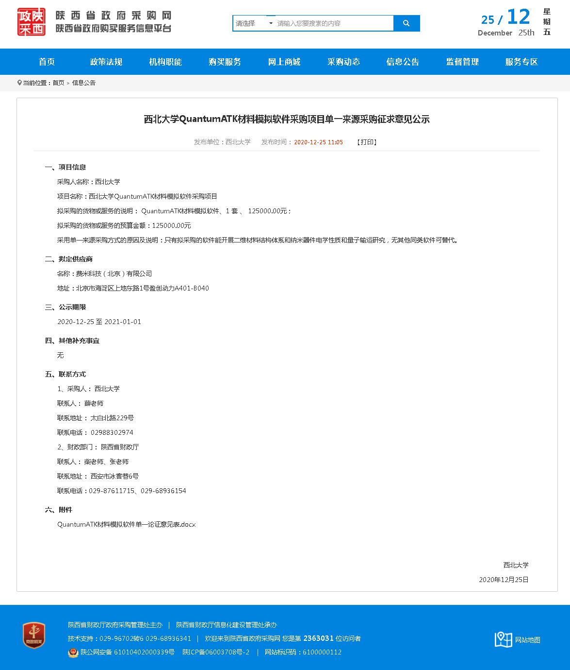 BB平台QuantumATK材料模拟软件采购项目单一来源采购征求意见公示