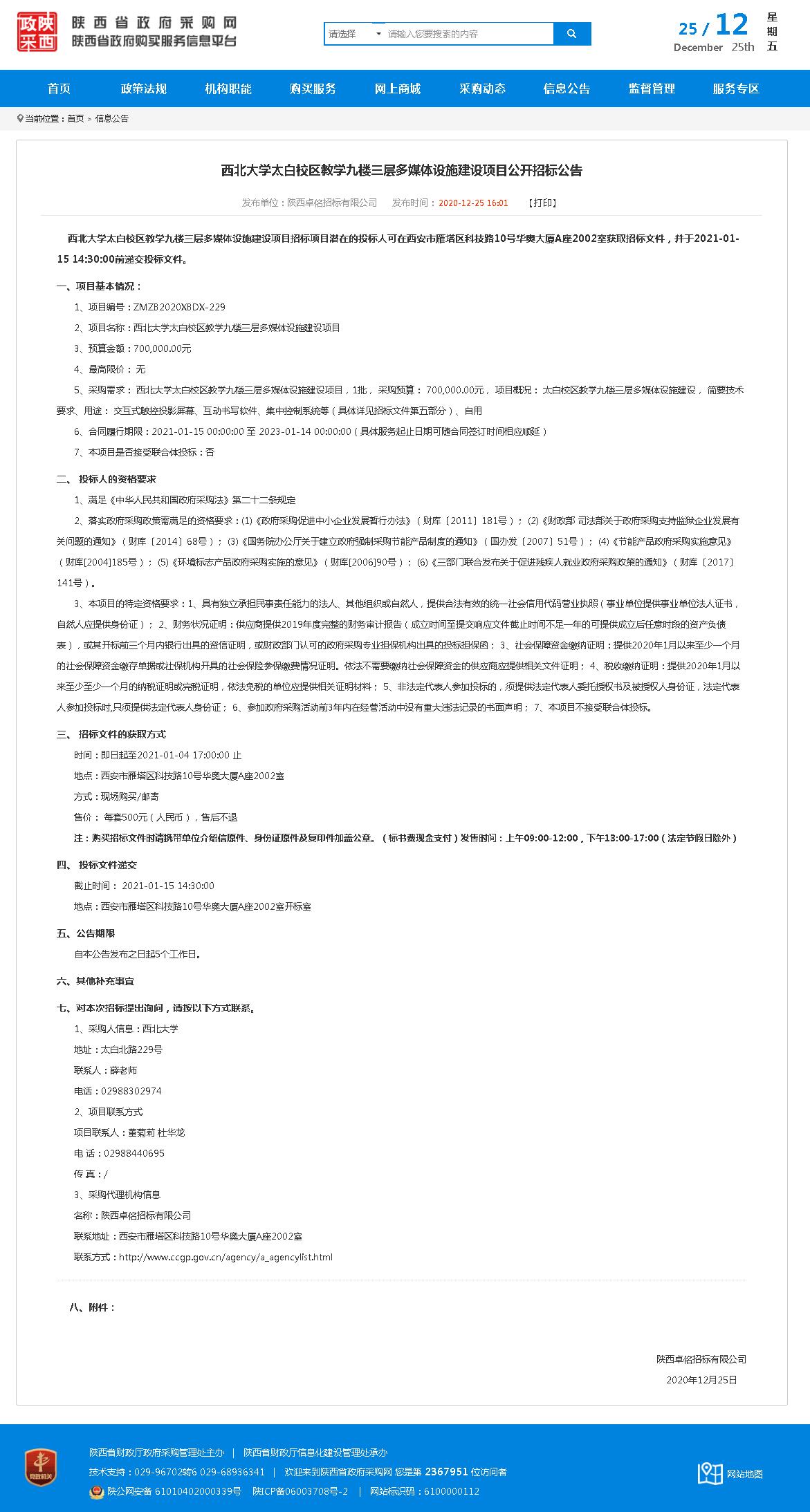 BB平台太白校区教学九楼三层多媒体设施建设项目公开招标公告