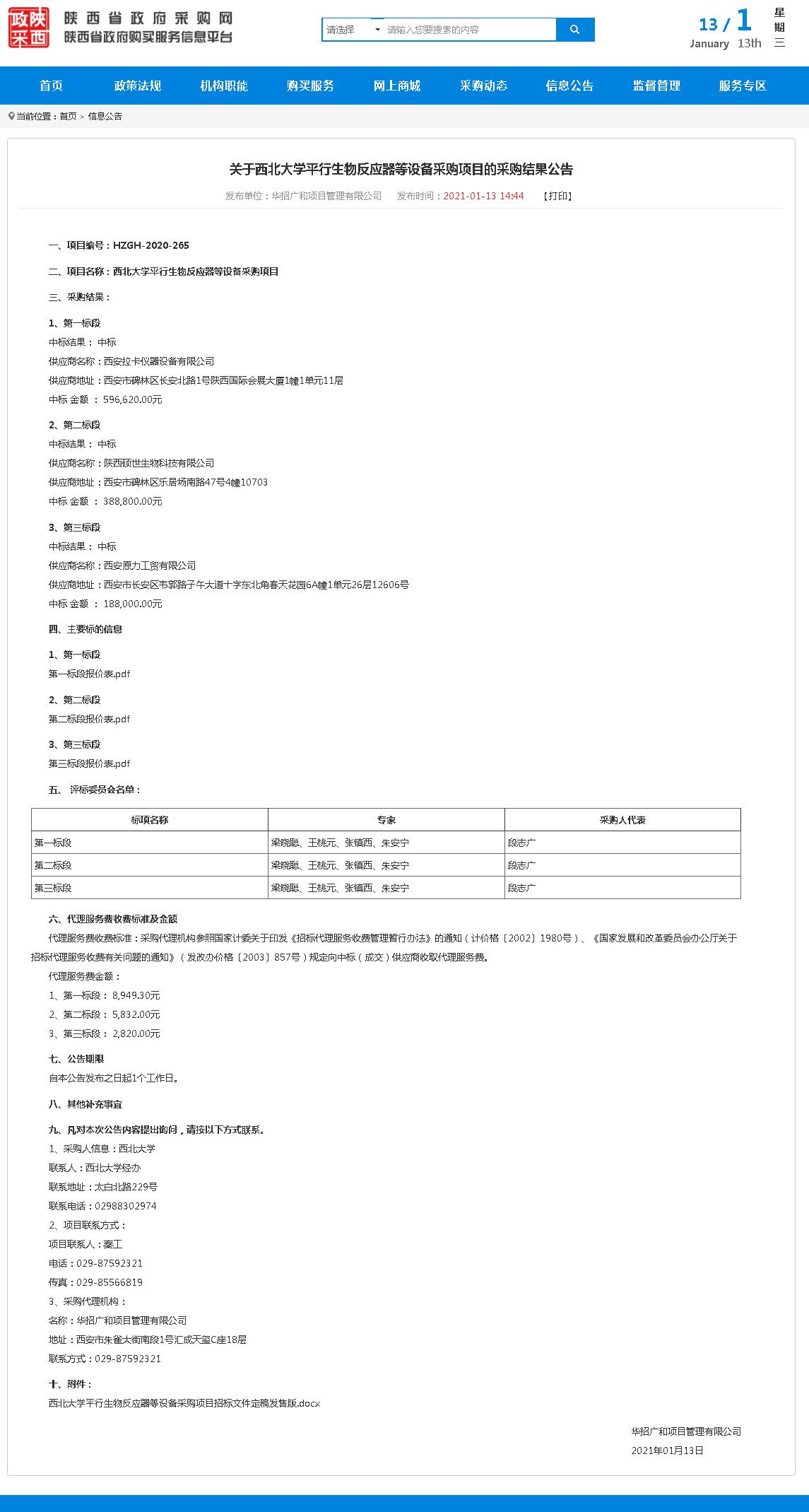 关于BB平台平行生物反应器等设备采购项目的采购结果公告