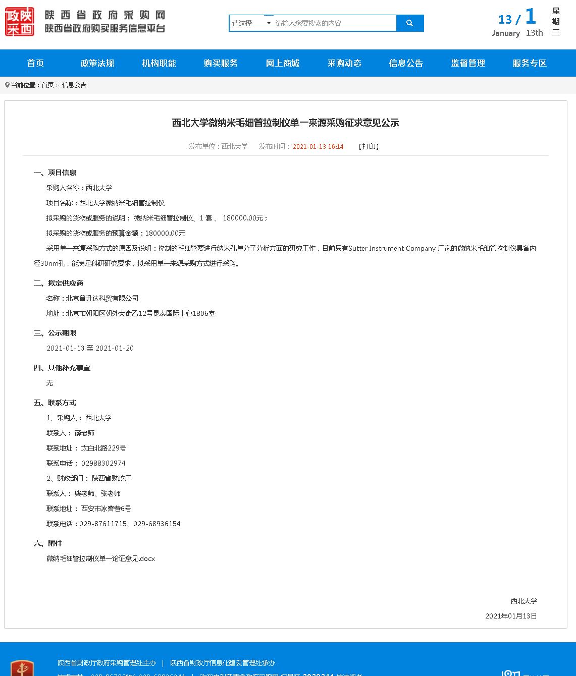 BB平台微纳米毛细管拉制仪单一来源采购征求意见公示