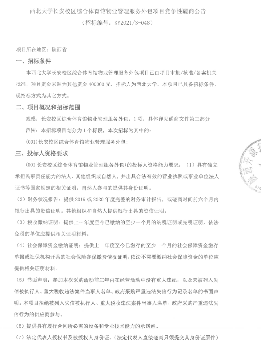 BB平台长安校区综合体育馆物业管理服务外包项目竞争性磋商公告