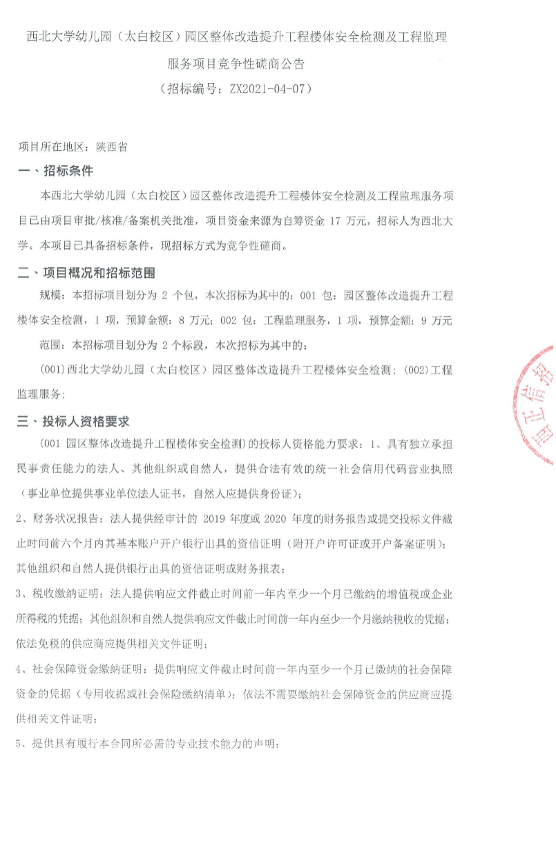 BB平台幼儿园(太白校区)园区整体改造提升工程楼体安全检测及工程监理服务项目