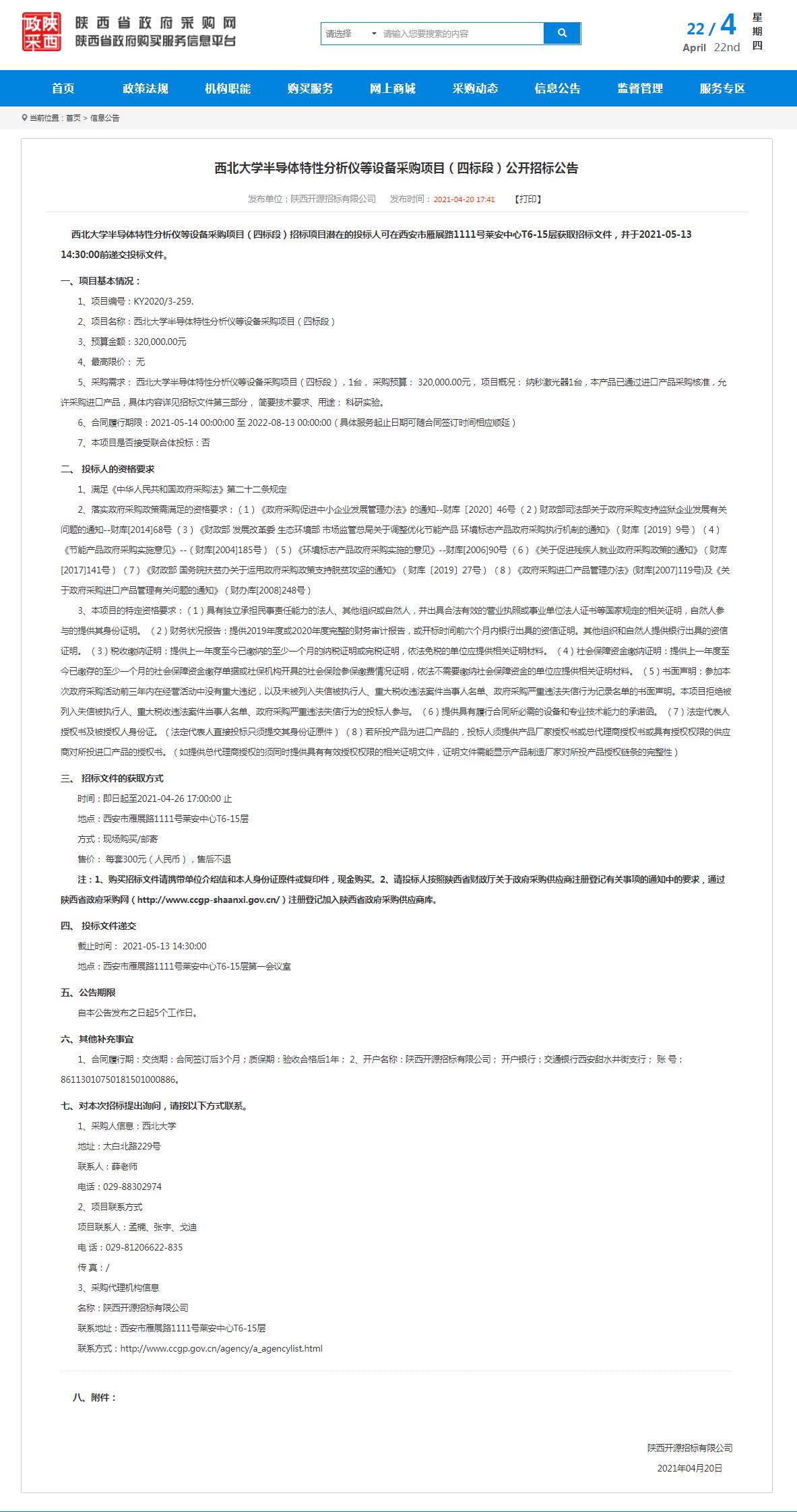 BB平台半导体特性分析仪等设备采购项目(四标段)公开招标公告