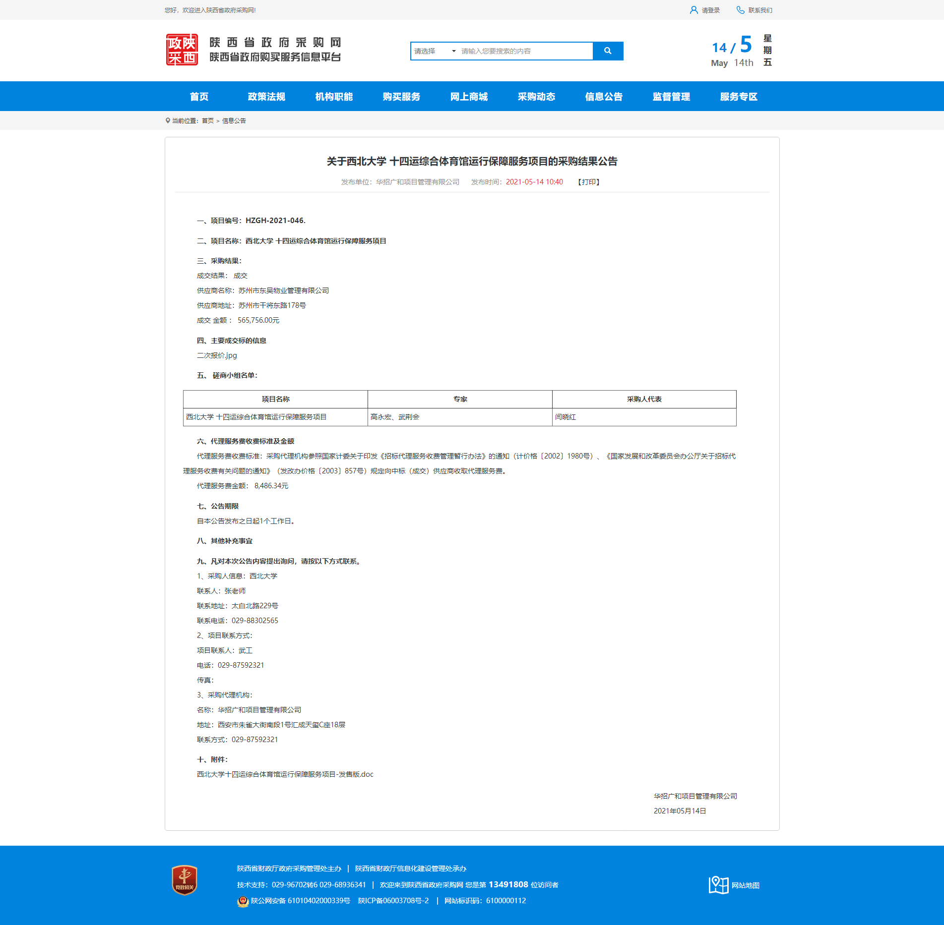 关于BB平台十四运综合体育馆运行保障服务项目的采购结果公告