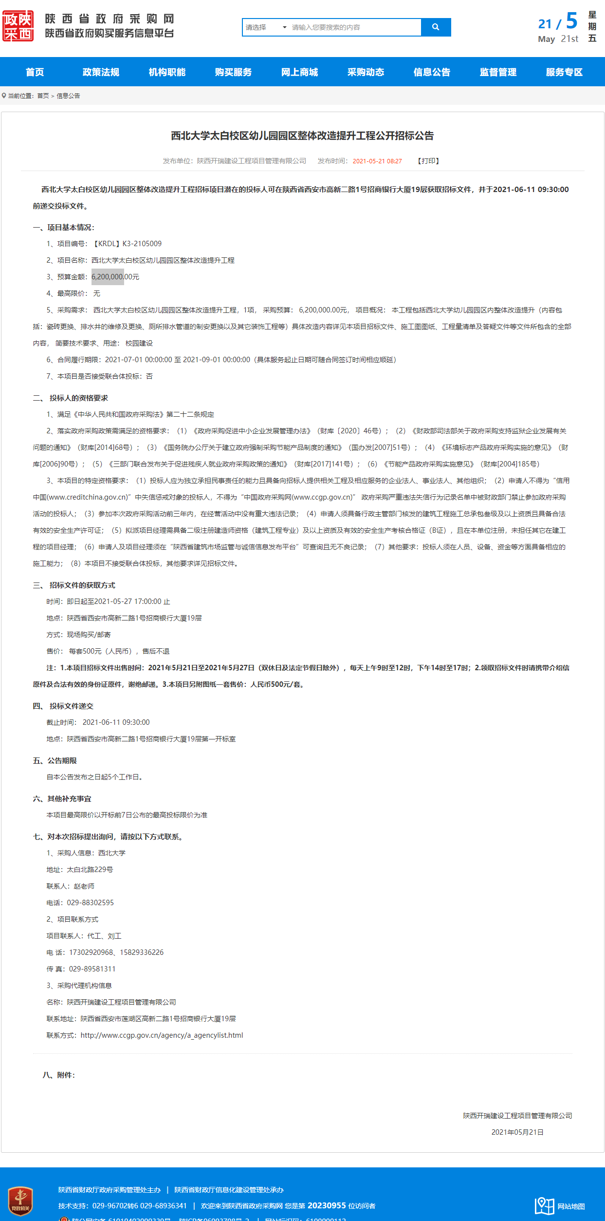 BB平台太白校区幼儿园园区整体改造提升工程公开招标公告