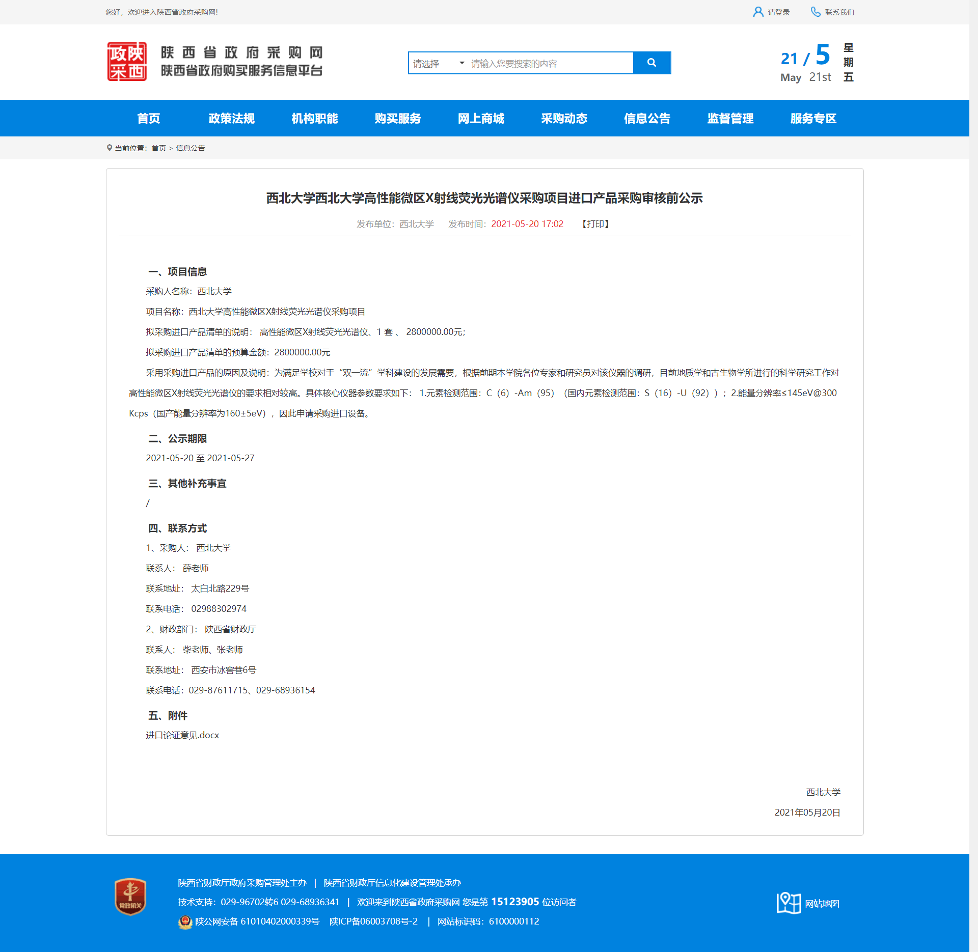 BB平台高性能微区X射线荧光光谱仪采购项目进口产品采购审核前公示 作者: 编辑:薛利娟 时间:2021-05-21 原公告地址:http://www.ccgp-shaanxi.gov.cn/notice/noticeDetail.do?noticeguid=8a85be33791baa0f017988f95b141335