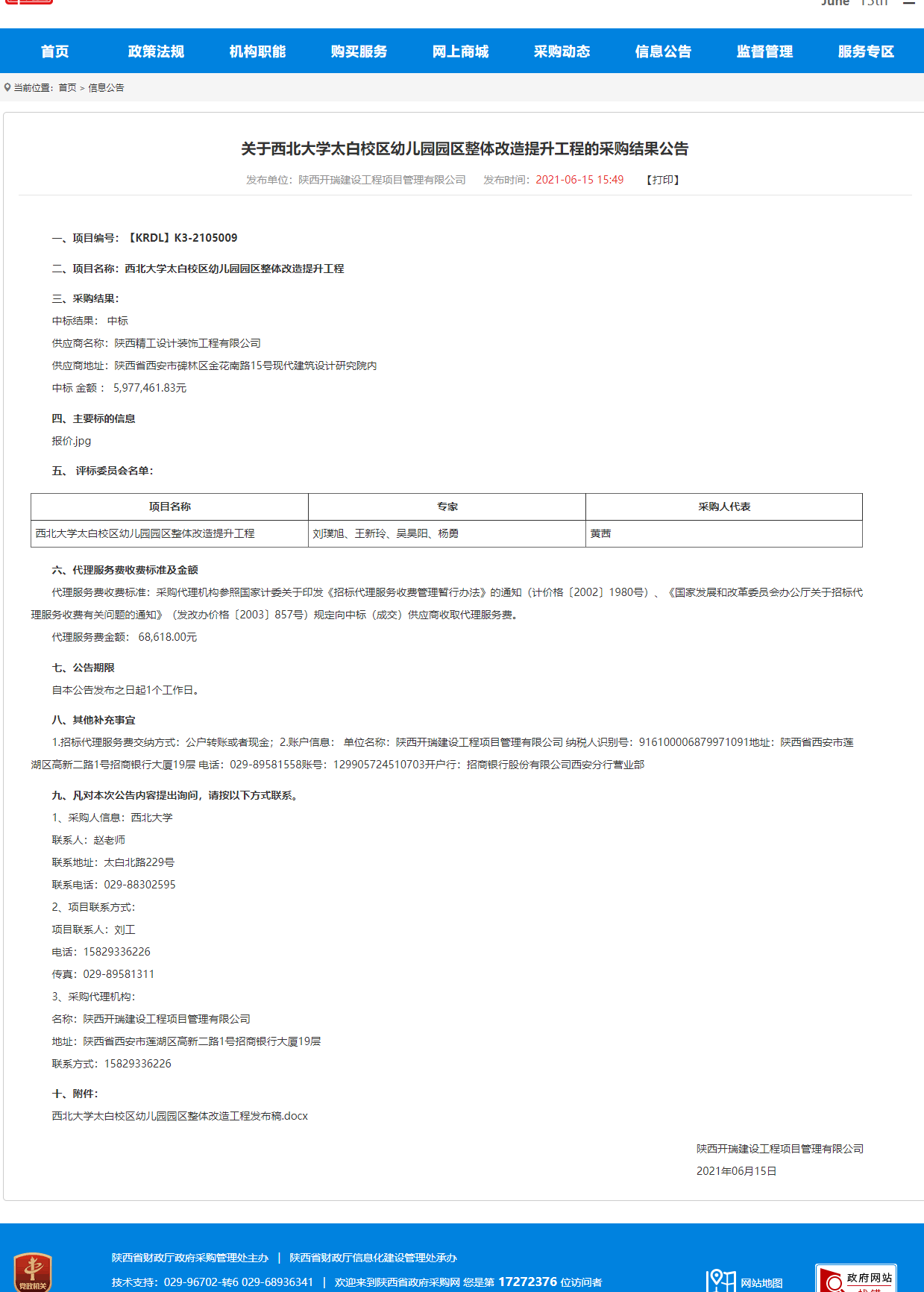 BB平台太白校区幼儿园园区整体改造提升工程的采购结果公告
