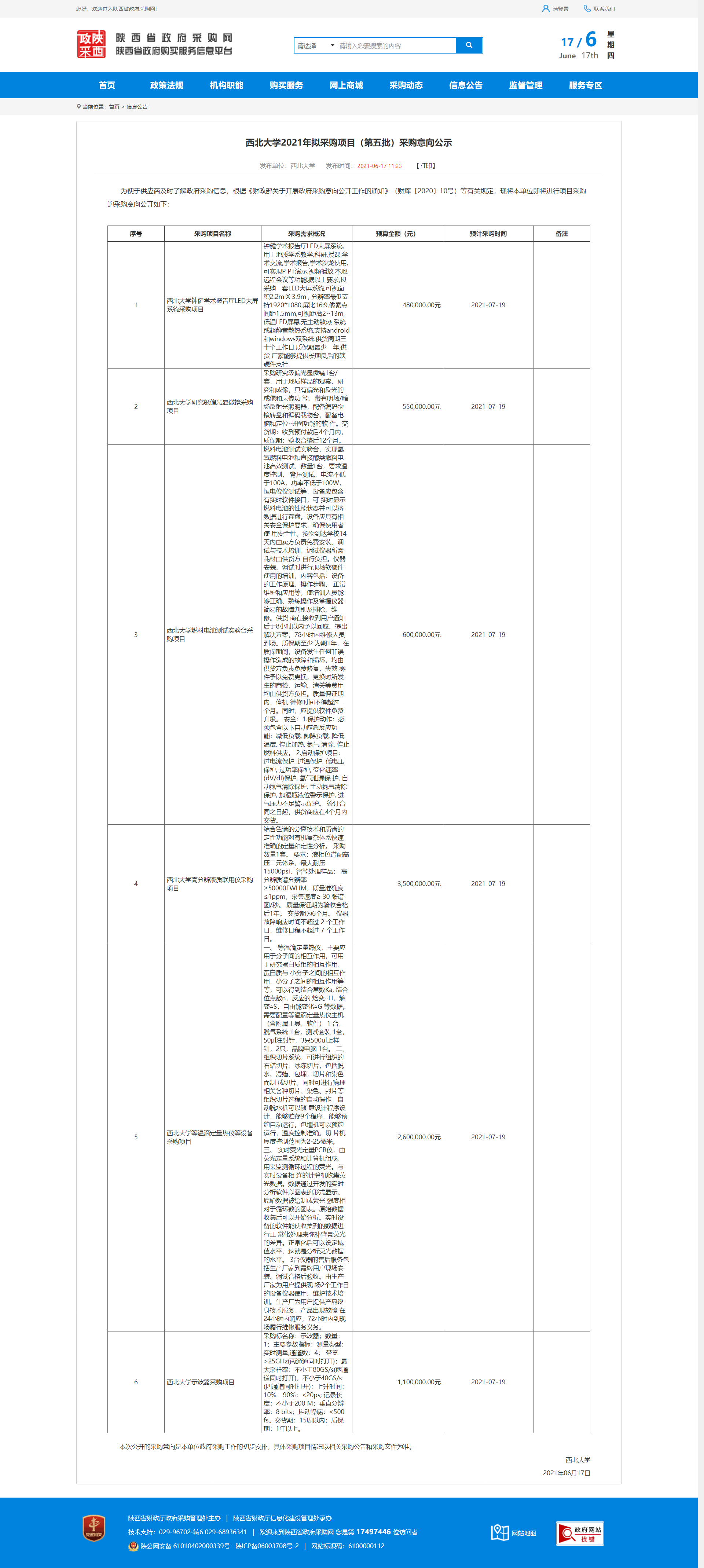 BB平台2021年拟采购项目(第五批)采购意向公示 作者:采购与招标办公室 编辑: 时间:2021-06-17 原公告地址:http://www.ccgp-shaanxi.gov.cn/notice/noticeDetail.do?noticeguid=8a85be33791baa0f017a17ba426d2bfb