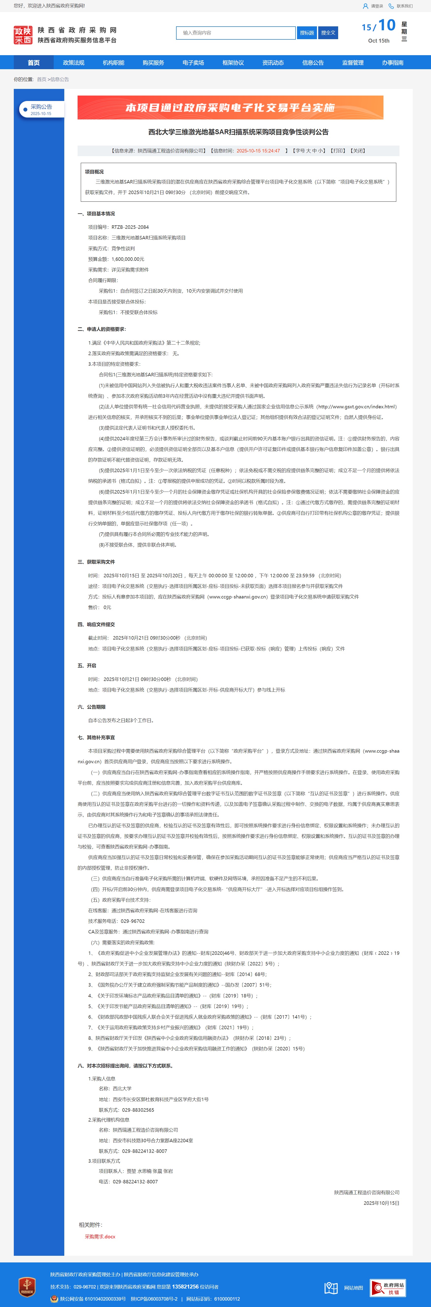 BB平台三维激光地基SAR扫描系统采购项目竞争性谈判公告