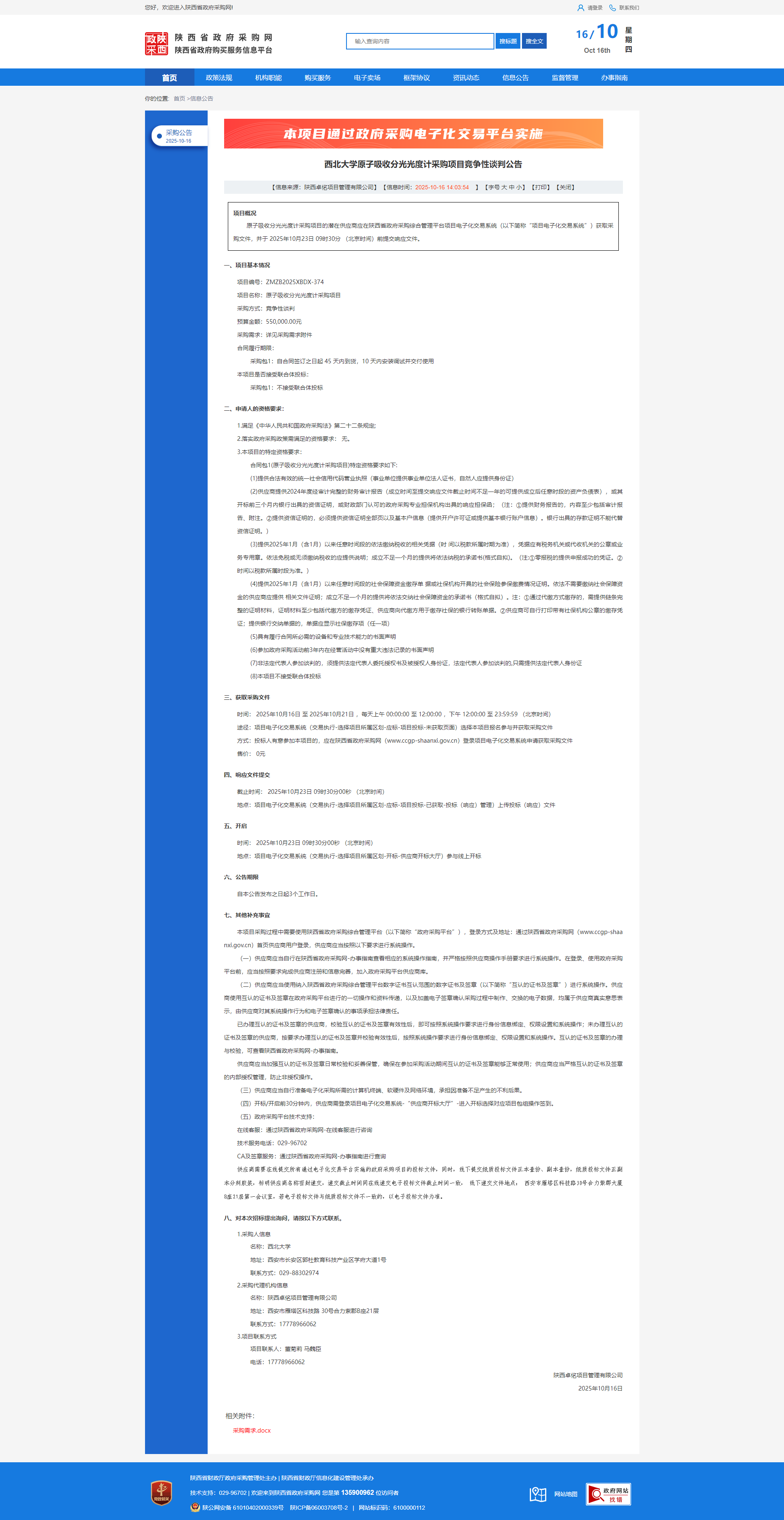 BB平台原子吸收分光光度计采购项目竞争性谈判公告