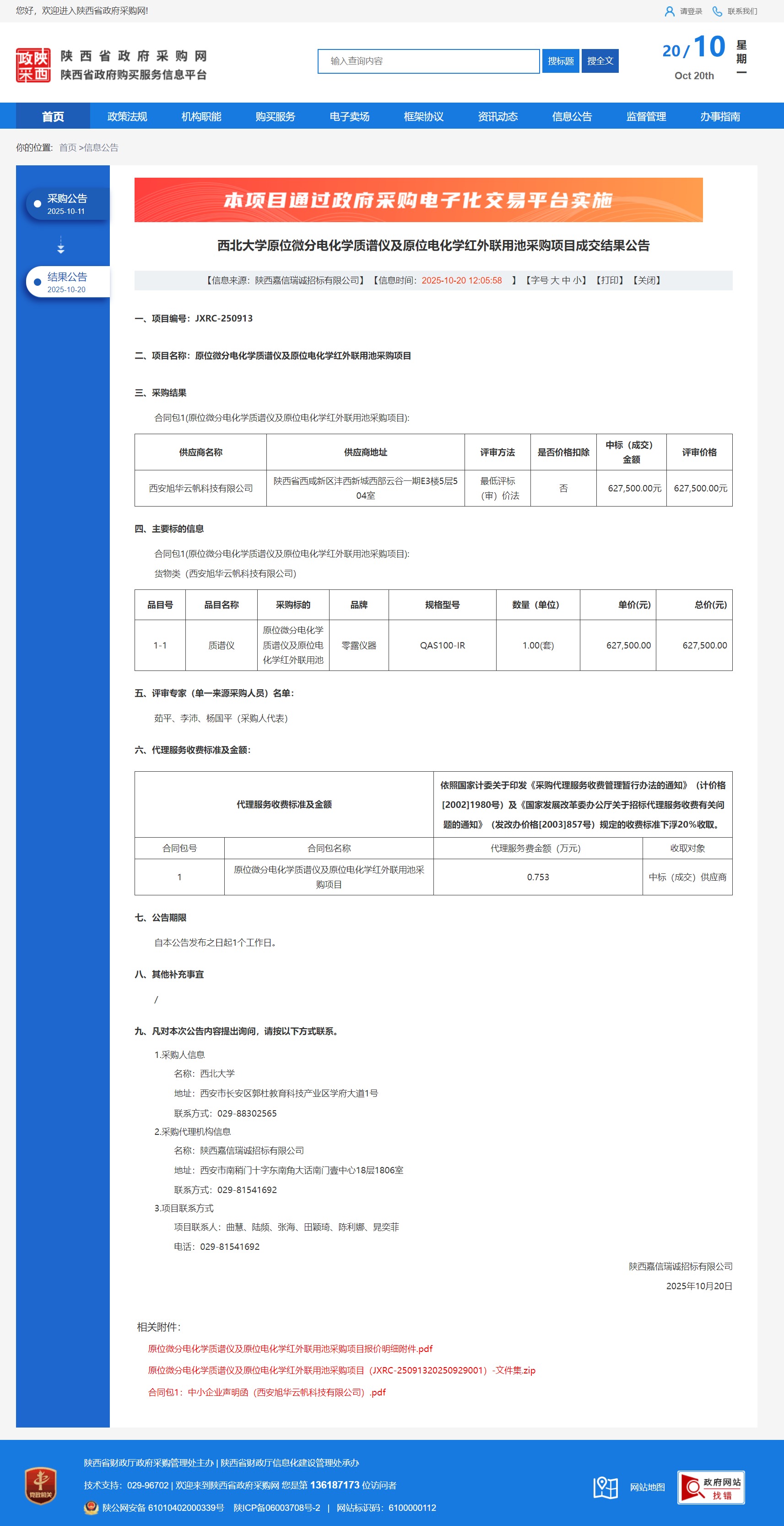 BB平台原位微分电化学质谱仪及原位电化学红外联用池采购项目成交结果公告